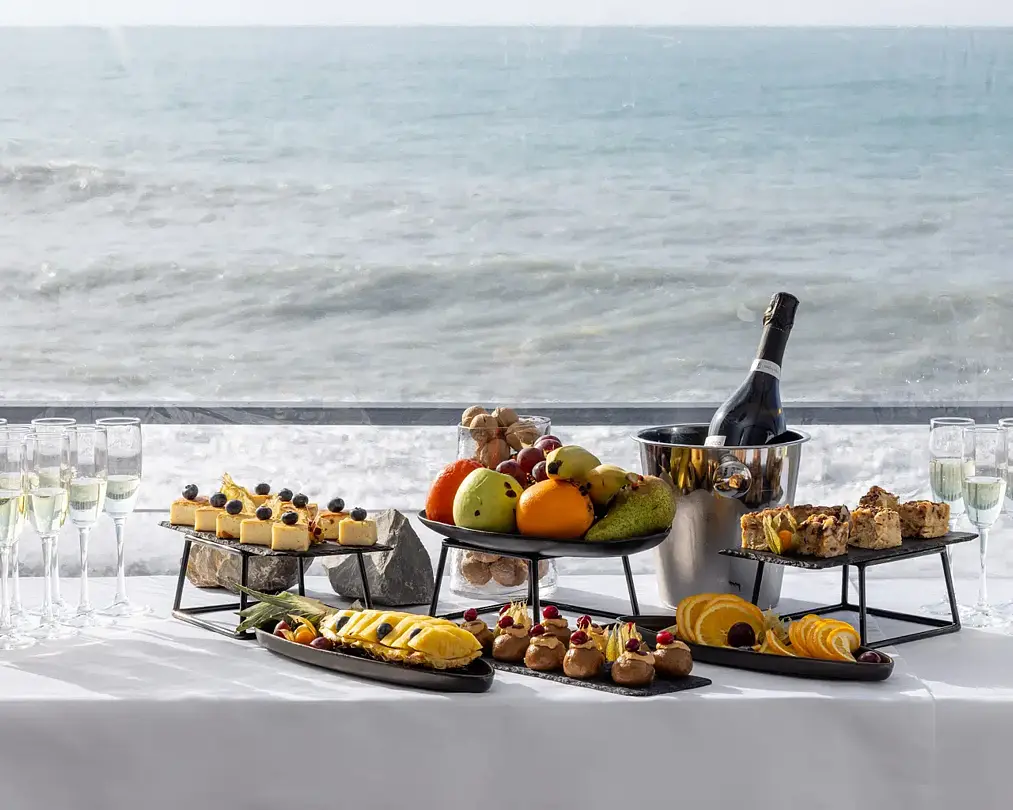 Полный пансион, обеспечивающий комфортный отдых с питанием. Утренние завтраки здесь представлены разнообразным шведским столом, ароматным кофе и панорамным видом на море, завершающимся бокалом игристого.