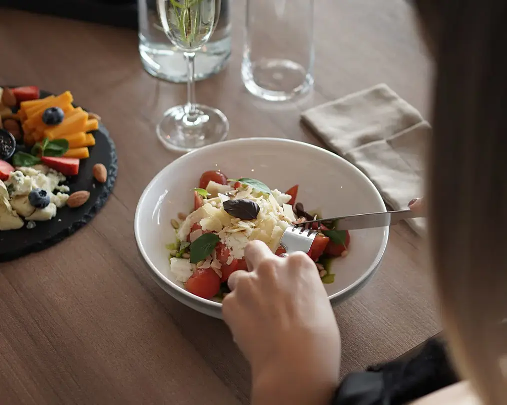 Обеды и ужины также предлагаются в формате шведского стола, но отель вправе перейти на сет-меню, где гости могут выбрать одно блюдо из двух предложенных позиций: на обед — салат, суп и горячее, а на ужин — салат, горячее блюдо и десерт.