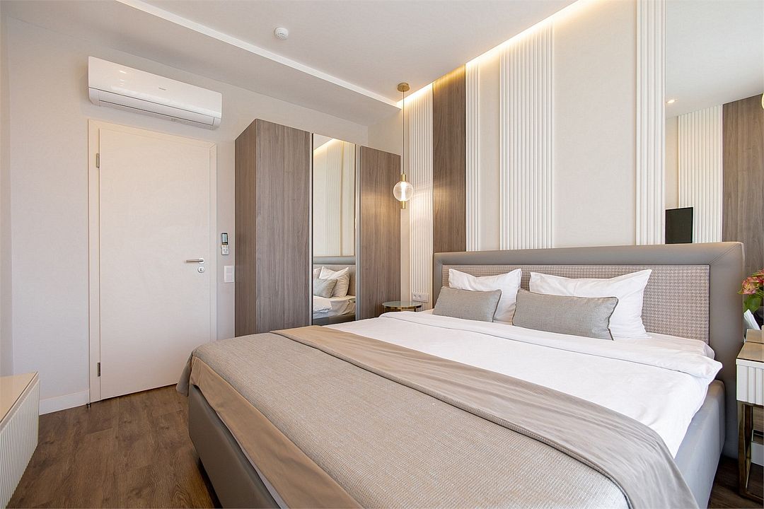 Все номера располагают панорамными окнами и просторным балконом с видом на окрестности. Апартаменты оборудованы мини-кухней, бытовой техникой, комплектом посуды и чайным набором. К услугам гостей халаты, тапочки, пляжные полотенца, набор гигиенических принадлежностей, а также утюг и гладильная доска по запросу. В номерах отеля, как и на всей территории, доступен высокоскоростной Wi-Fi.