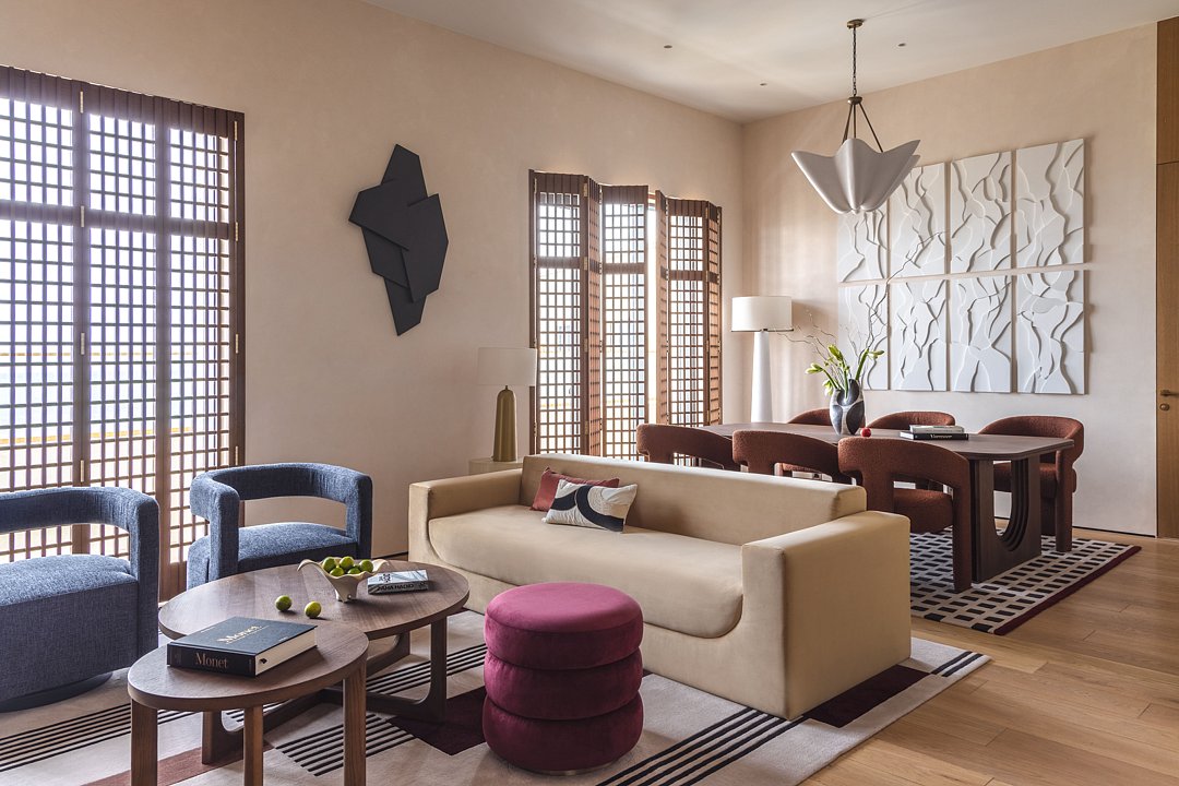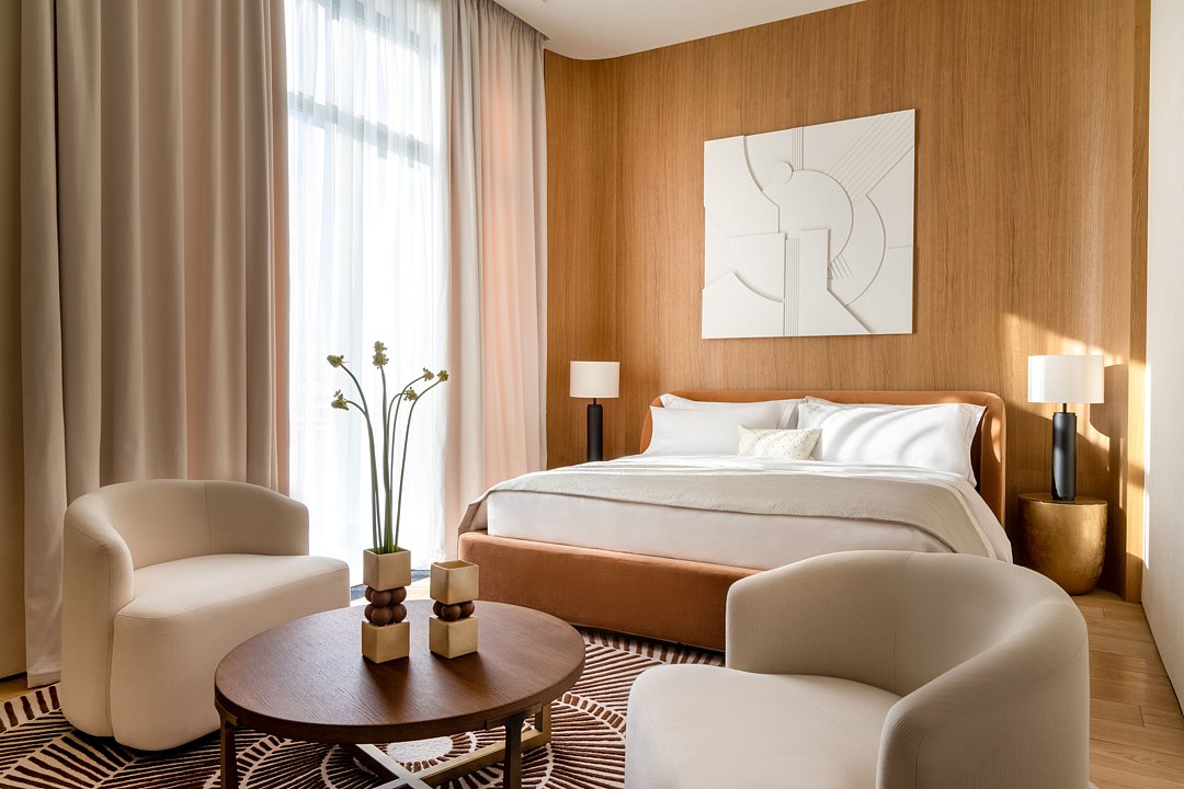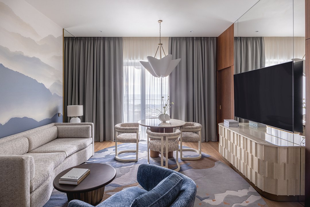 Роскошное заведение предоставляет возможность остановиться в стильных комфортабельных номерах, среди которых есть апартаменты с великолепным морским горизонтом, Президентский Люкс и Пентхаус с личным инфинити-бассейном, террасой с прекрасным видом, персональным батлером и доступом в эксклюзивный «M Club». Эргономично спроектированные пространства и оригинальные отделочные материалы создают уникальную атмосферу, способствующую приятному отдыху. В каждом номере имеется необходимая меблировка, быстрый Wi-Fi, собственная ванная комната и расширенный набор принадлежностей.