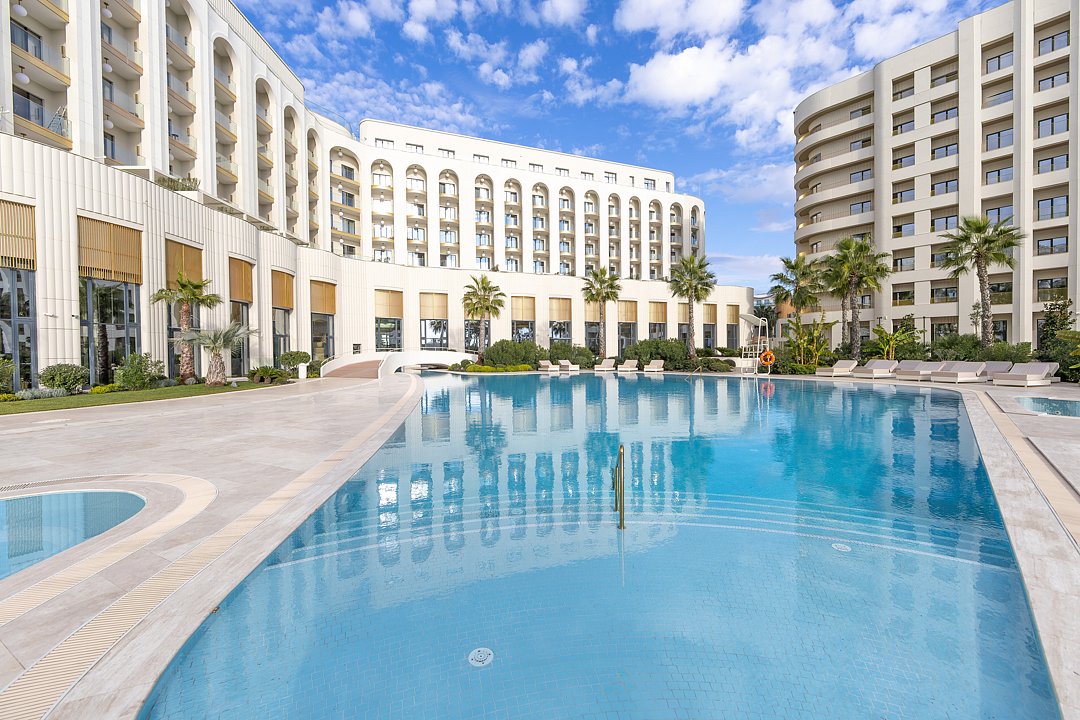 Вода в бассейне: бассейн с морской водой- вода морская: в т.ч. семейный, медленная круговая река, бассейн 18+, инфинити-бассейн в VIP на 8-ом этаже отеля;