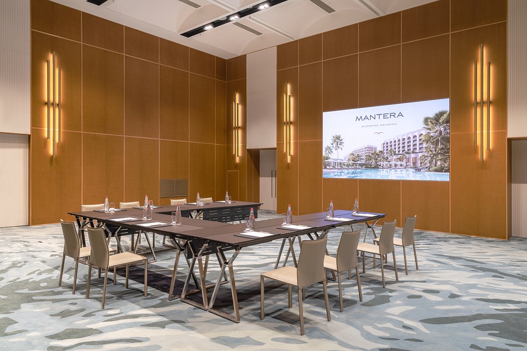 Конференц-центр отеля «MANTERA Supreme» подходит как для масштабных мероприятий, так и для частных встреч и деловых событий. Собственная кухня и банкетный сервис гарантируют отличное гастрономическое оформление.