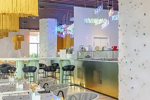- аква-бар: у инфинити-бассейна в VIP-зоне только для взрослых на 8-ом этаже (премиальные коктейли, напитки), Amber Sky Bar - летний бар под открытым небом на восьмом этаже отеля (премиальные коктейли, крепкие напитки, винная карта);