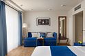 К услугам гостей: 44 номера, выполненных в приятной бело-синей гамме и оснащенных всем необходимым для комфортного отдыха; меню а la сartе, разработанное шеф-поваром ресторана, позволит насладиться вкусными и сбалансированными завтраками, обедами и ужинами, для юных посетителей предусмотрено специальное детское меню, 25-метровый бассейн с подогревом, детский бассейн, детская и спортивная площадки, амфитеатр для просмотра ярких спортивных событий, шедевров мирового кинематографа, а также мультфильмов для детей, тематические вечеринки.