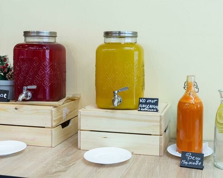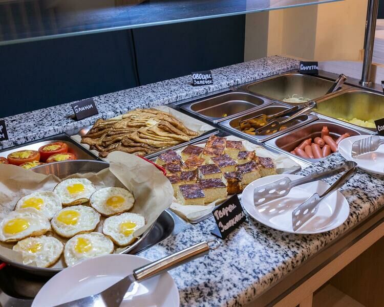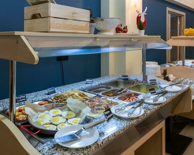 На территории отеля открыт ресторан, в нем подаются блюда по системе «Шведский стол». Кафе «Флора» и магазин «Магнит» находятся через 0,2 км.