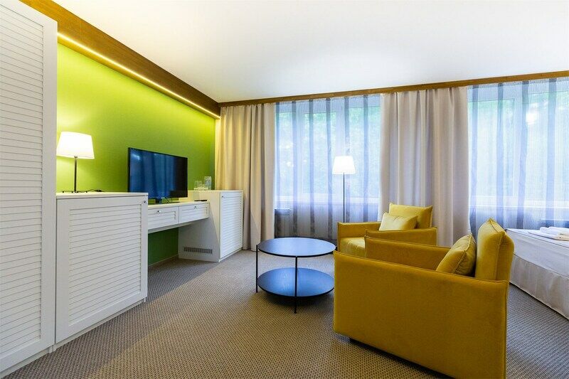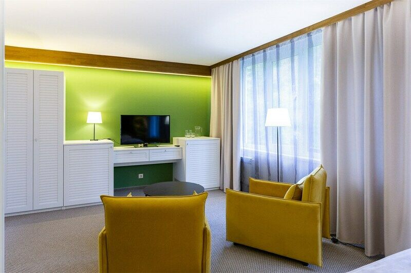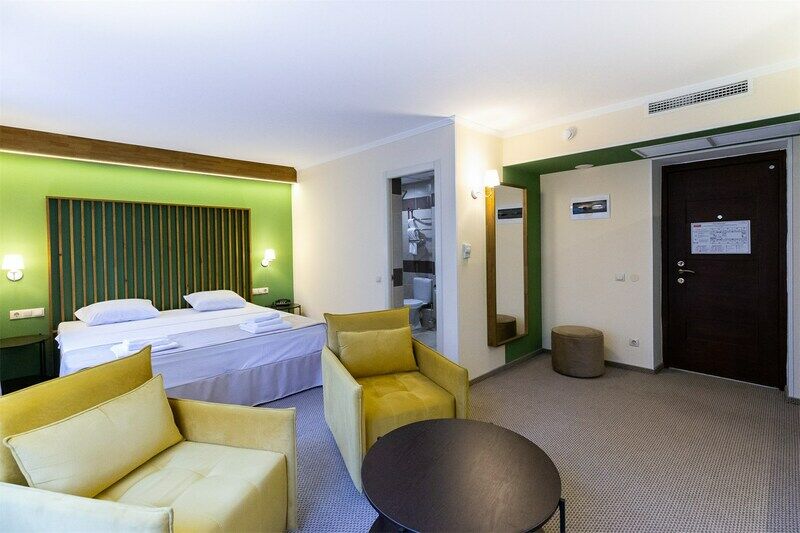 Путешествие с паройНеплохоДля трех звезд отель достойный. Брали номер комфорт плюс. Большое пространство, много шкафов, диванчик перед телевизором. Сам номер порадовал. В номере был лист с ценами за ущерб мебели и при этом на диване был след от утюга. Из странностей это уборка номеров. Женщина стучалась к нам в 9 утра два дня, пока мы не повесить табличку «не беспокоить», столкнулись с таким впервые, обычно мы никогда не заставали уборку номеров, даже когда вставали гораздо позже. Сама уборка была не очень, кружку из под кофе просто ополоснули под водой, даже не удосужившись вымыть осадок на дне. Вообще впервые видела чтобы на кружке оставались капли от воды. В целом номер всегда оставляем чистым и тк это единственное что нужно было сделать, остались впечатления не очень. Также брали завтраки. Все было вкусно, к завтракам вопросов нет. Категорически не советую идти в их «ресторан». Решили одни дождливым вечером поужинать там. Официант была очень опечаленная, перепутала все гарниры и отказалась как то решать ситуацию. Не уверена, что отель относится к ресторану, поэтому на оценку это не повлияло. Сам персонал на ресепшене приветливый, все доступно объясняют, были проблемы с унитазом, который подтекал, проблему решили без вопросов. Еще минус был в том, что в номере было достаточно холодно, посоветовали включить кондиционер, но он как будто вообще не работал, в целом больше нам ничем не помогли. Из плюсов это бесплатное посещение парка динозавров для жителей отеля, парк не очень, но приятно. Непосредственно у отеля парковки нет, но недалеко( метров 300) у торговых рядов всегда находилось место.