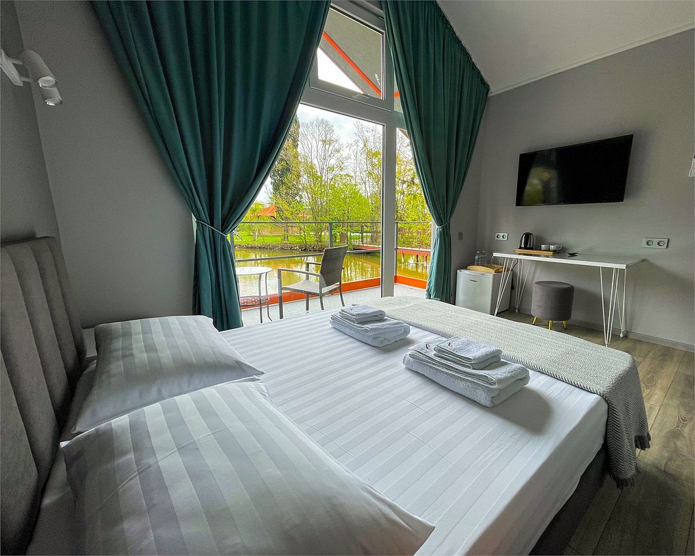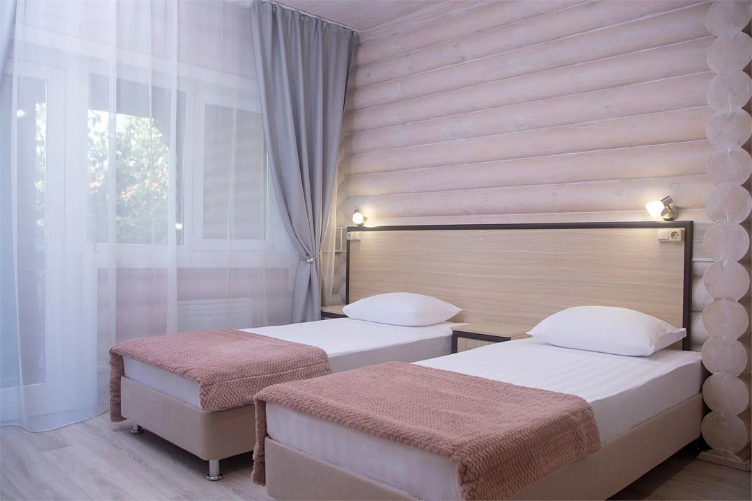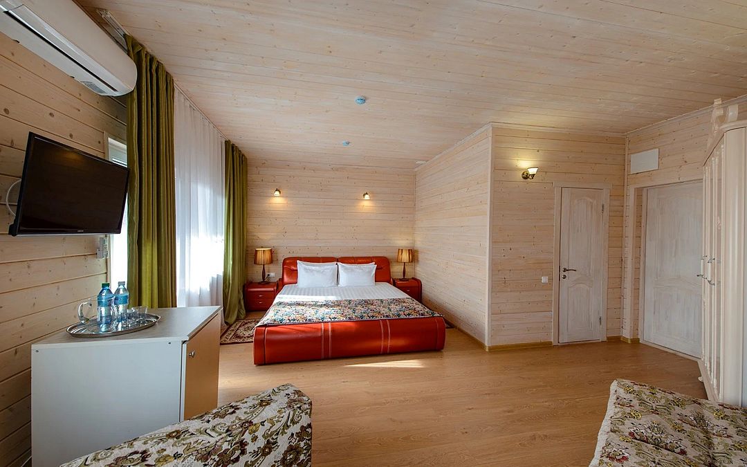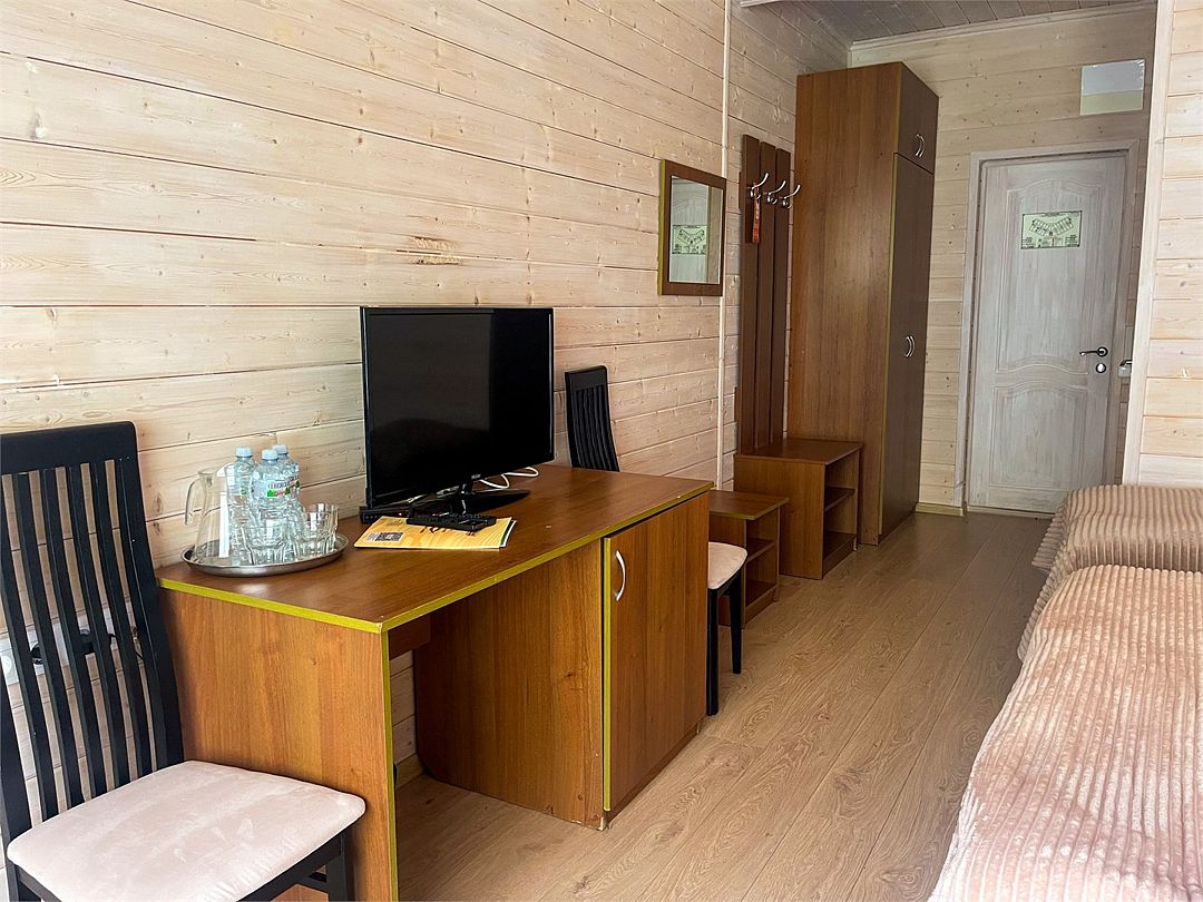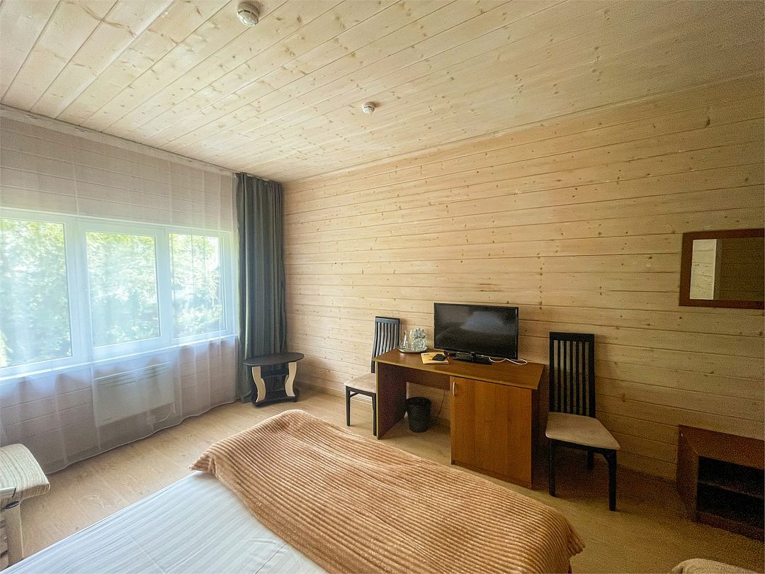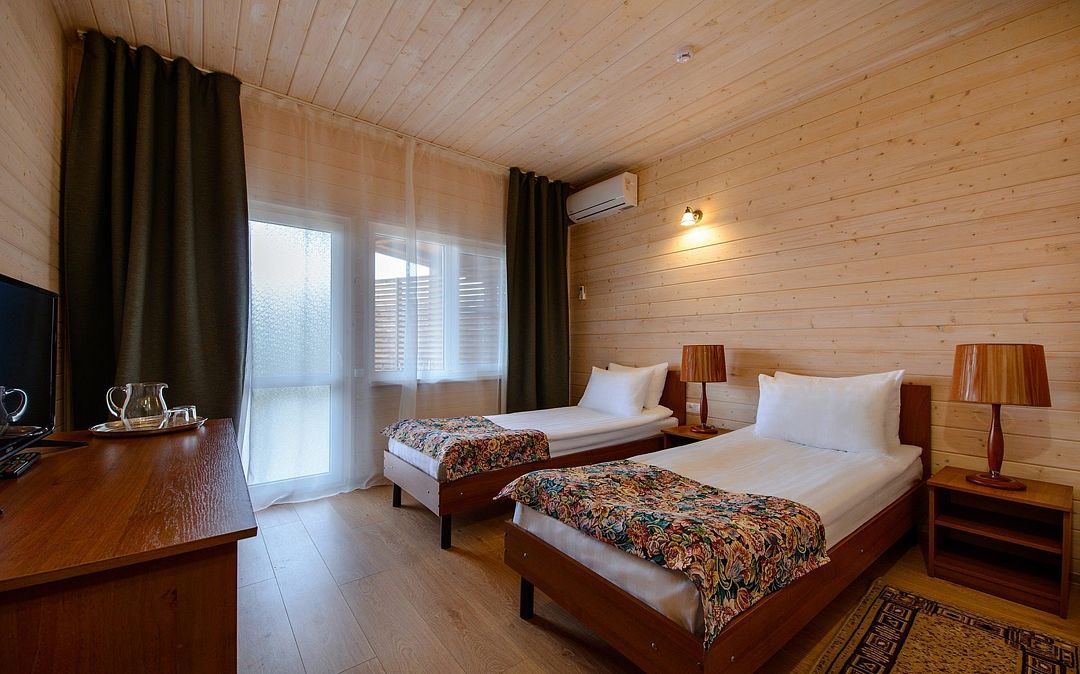 Уютные однокомнатные номера с двуспальной или двумя односпальными кроватями и возможностью установки дополнительного места для детей от 5 до 12 лет. Расположены в двухэтажном деревянном корпусе и оснащены террасой (на первом этаже) или балконом (на втором этаже).Услуги и удобства