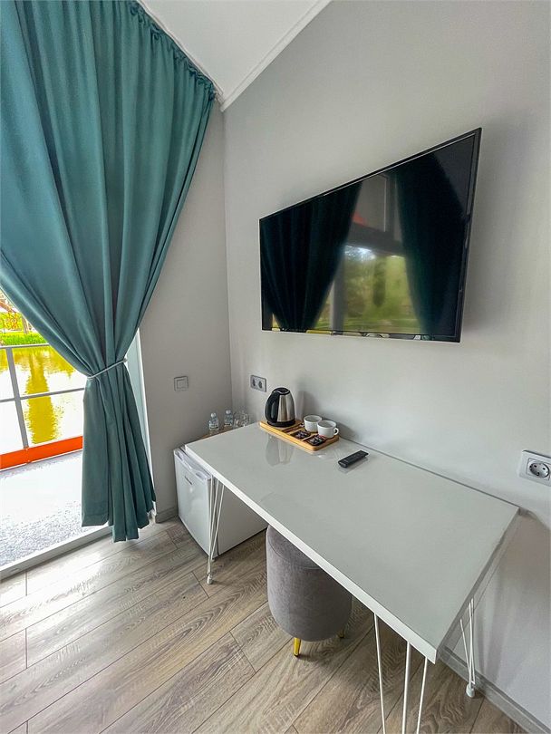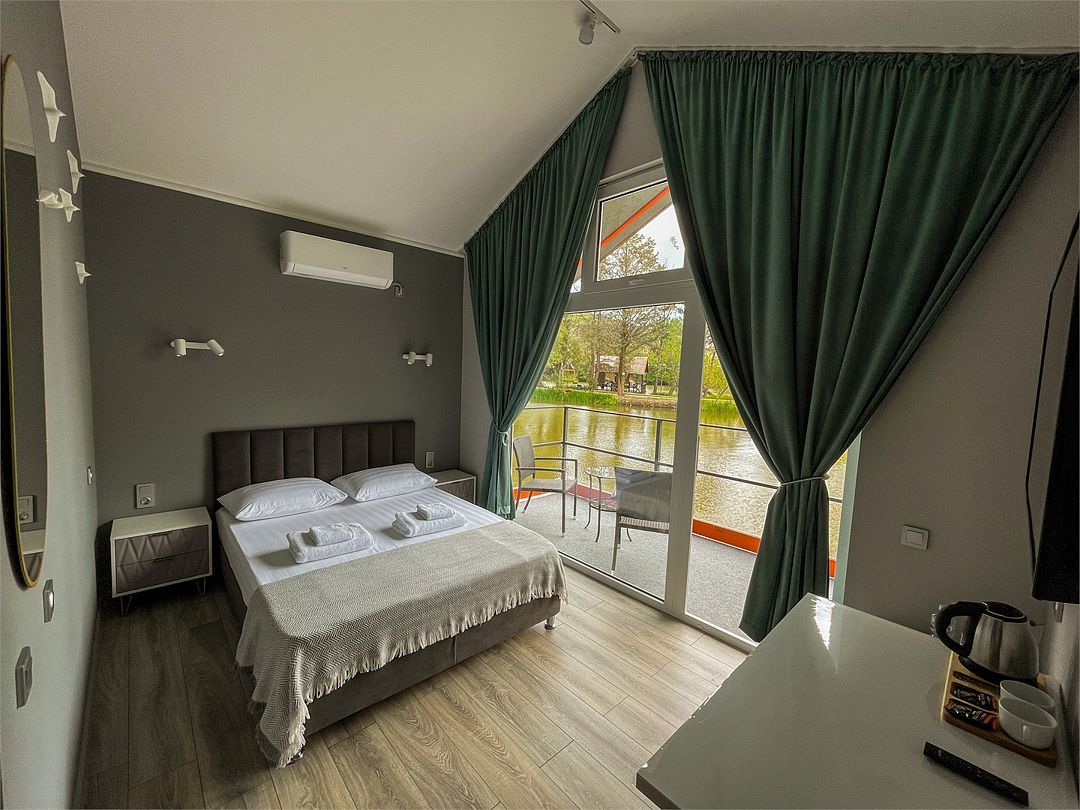 Wi-Fi, кондиционер, светильник, фен, утюг, душевая кабина, санузел, водонагреватель, халаты, банные полотенца, пляжные полотенца, тапочки, косметические средства, двуспальная кровать, стулья, шкаф для одежды, зеркало, чайный набор, обслуживание номеров, информационная карта, меню, сейф, чайник, раковина, отдельный вход в номер, высокие потолки, стаканы, стол, туалет, вид на парк, панорамные окна, сушилка для белья, телевизор с плоским экраном, мини-холодильник, вид на озеро, телевизор со Smart TV, пуфик, уборка номера, услуги прачечной (платно), вешалки-плечики, бутилированная вода, окна от пола до потолка, прачечная (за дополнительную плату)В гостиничном номере