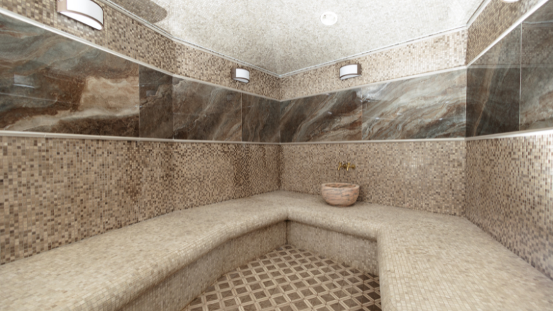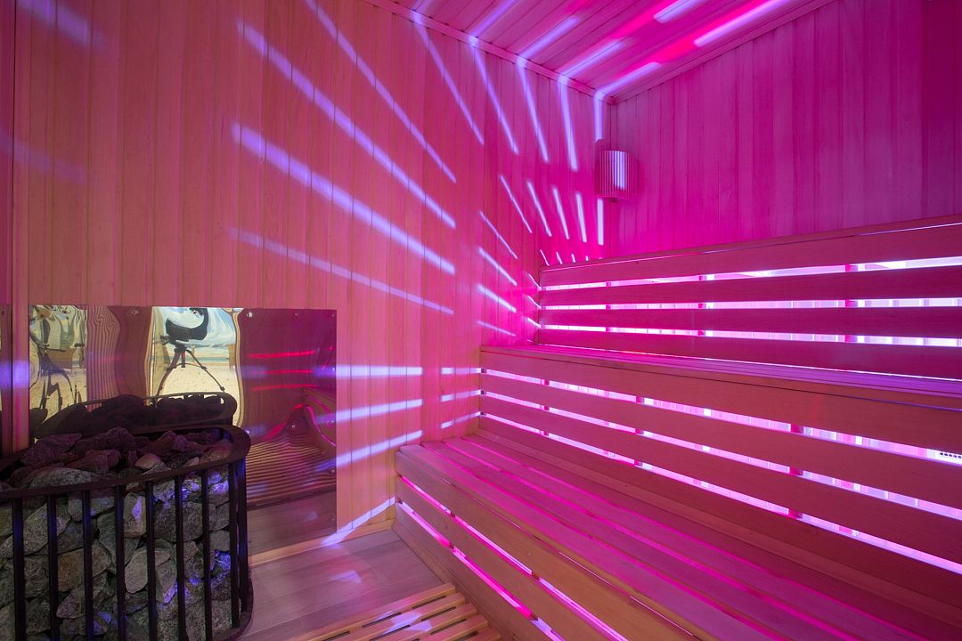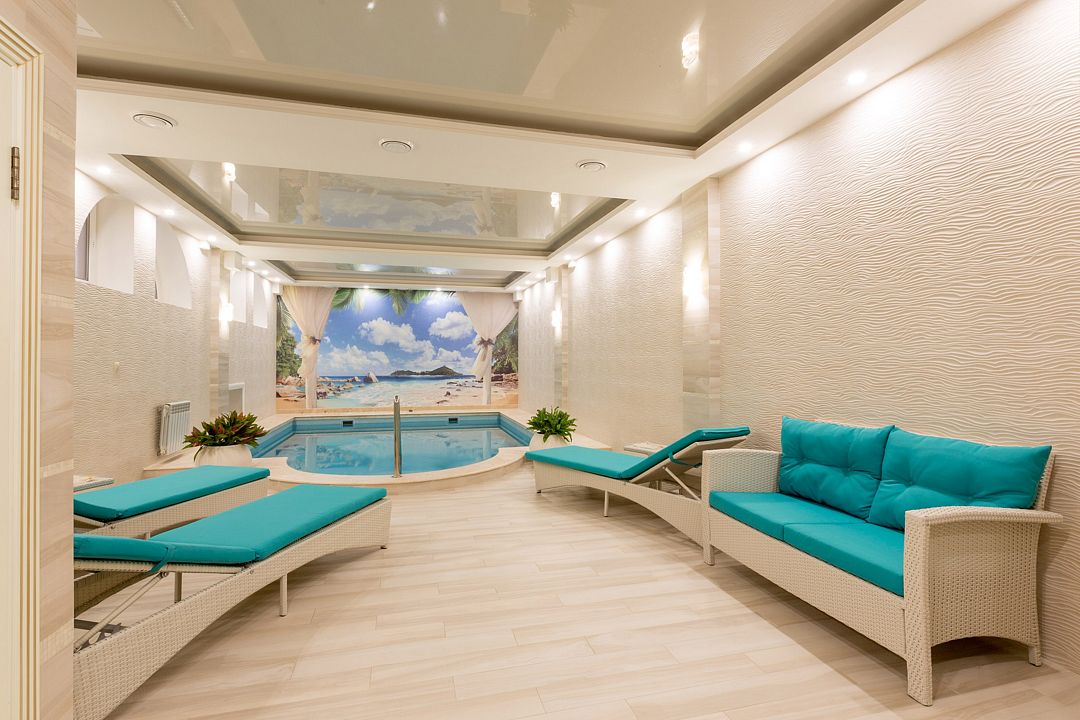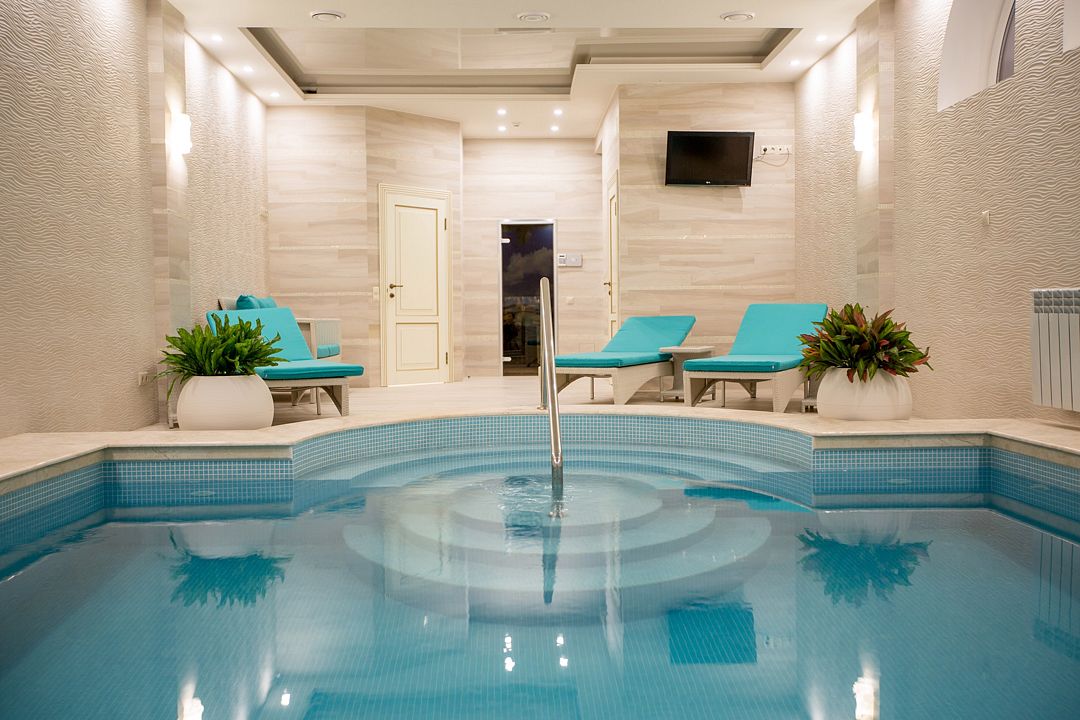 В распоряжении постояльцев — крытый бассейн с подогревом, работающий в течение всего года. Для желающих расслабиться в банном комплексе, работает сауна с парной, есть услуги массажиста.