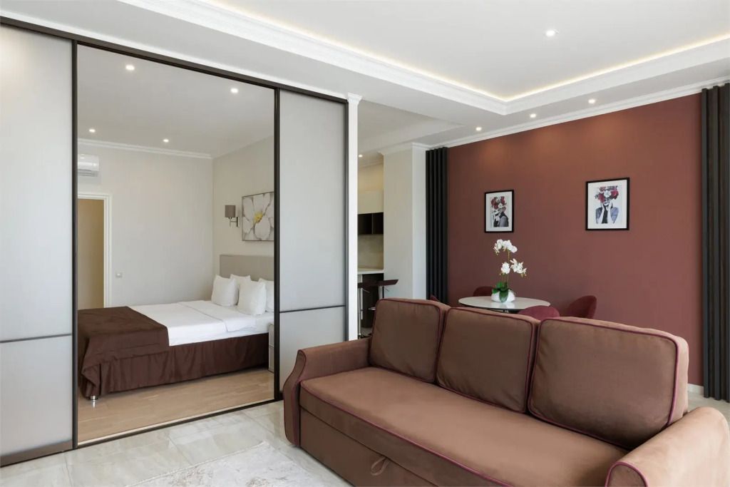 Wi-Fi, холодильник, кондиционер, светильник, фен, система безопасности, плита для приготовления пищи, микроволновая печь, утюг, ванная комната, ванна или душевая кабина, халаты, банные полотенца, пляжные полотенца, тапочки, косметические средства, балкон, двуспальная кровать, гладильная доска, тумбы, стулья, шкаф для одежды, вешалки, барная стойка, мебельный гарнитур, кухня, обслуживание номеров, сейф, стиральная машина, чайник, раковина, обеденная зона, вид во двор, кухонная посуда, туалетный столик, туалетные средства, туалет, сплит-система, цифровое тв, диван-кровать, раскладной диван, внутренний телефон, телевизор с плоским экраном, неограниченное посещение СПА, холодильный шкаф, духовой шкаф, вешалки-плечики, затемняющая штора, зеркало в полный рост, можно с питомцамиВ апартаментах