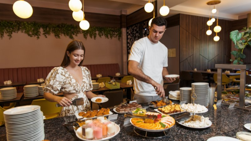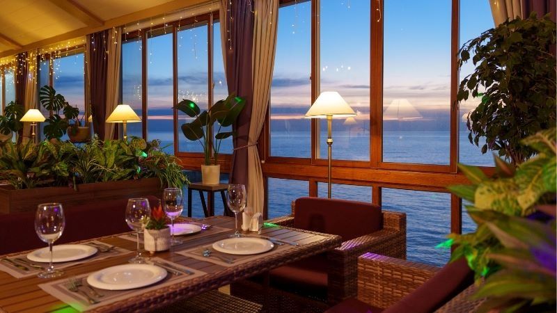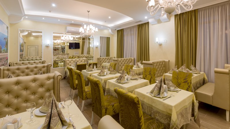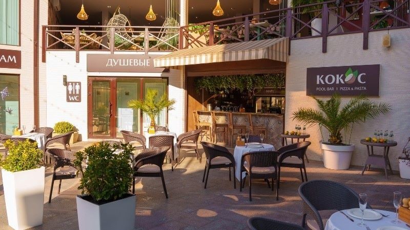 При отеле работает основной ресторан, на его территории есть кофейня и бар. Из панорамных окон ресторана отеля можно до позднего вечера любоваться морскими просторами. Кроме этого, в окрестностях немало пунктов питания, способных удовлетворить любые запросы.