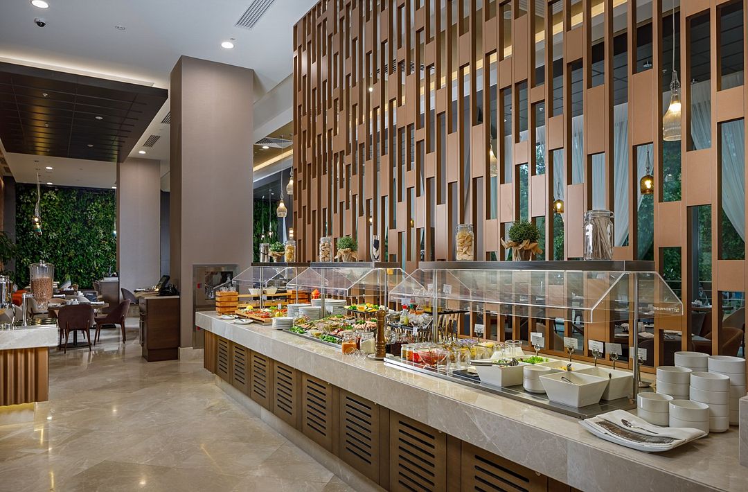 Ресторан работает по системе «шведский стол» на завтраки, обеды и ужины.