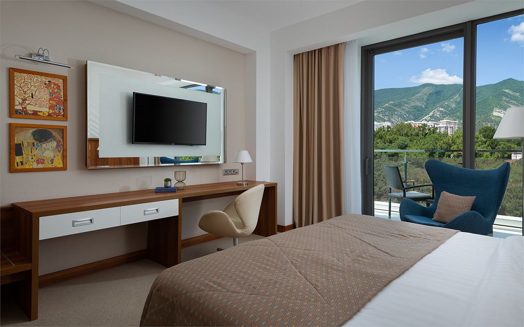 Однокомнатный номер с видом во двор или на горы в новом корпусе класса люкс. Выполнен в теплых светлых тонах. В распоряжении гостей удобное рабочее место и мягкая мебель. Номер порадует трансформируемой кроватью, которая гарантирует крепкий, восстанавливающий силы сон и полноценный отдых. Ванная комната оснащена душем и ванной. Идеально подходит для отдыха и деловых поездок. *Дополнительное место предоставляется за отдельную плату.Услуги и удобства