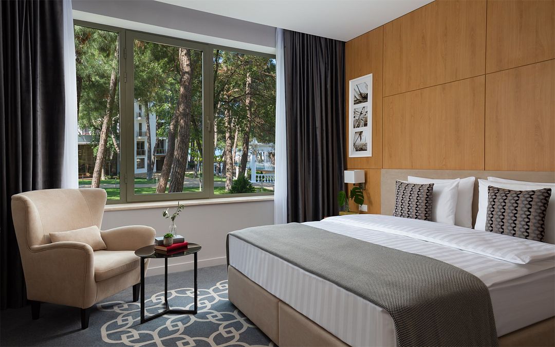 Однокомнатный номер с трансформируемой кроватью (большая французская кровать или две раздельные кровати). Смежные номера делают комфортным отдых родителей с детьми или компаний. Цветовое настроение «Свежий Лайм». Все номера отличаются высоким уровнем комфорта. В каждом номере: автономная система кондиционирования, ванная комната с набором полотенец, фирменной косметикой и феном; телефон, спутниковое телевидение, мини-бар (комплектуется за дополнительную плату), мини-сейф, балкон.Услуги и удобства