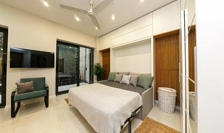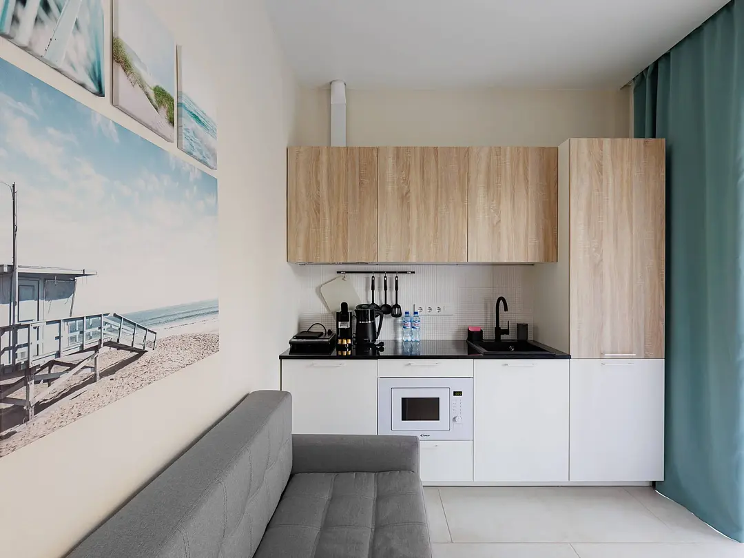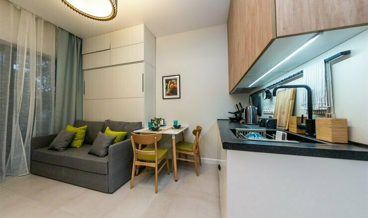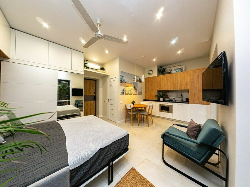 Смарт ТВ, кондиционер, мини-кухня с плитой, чайником и