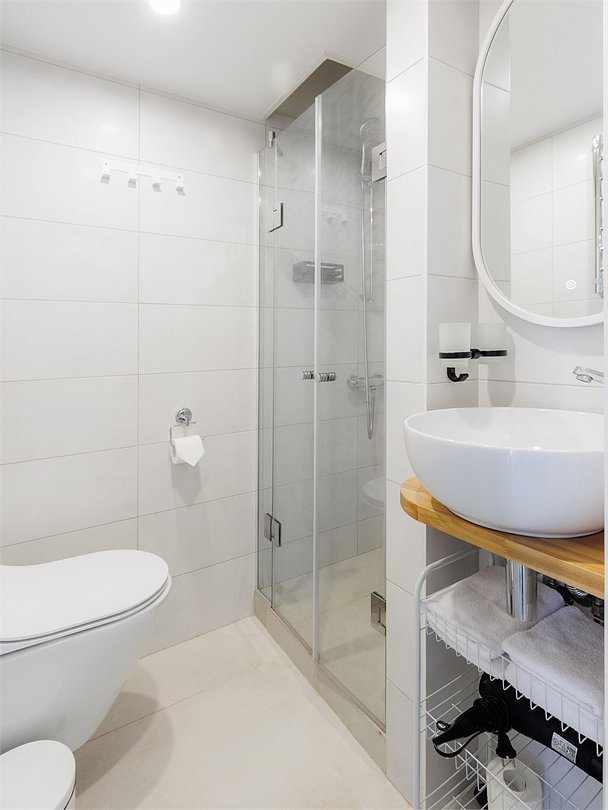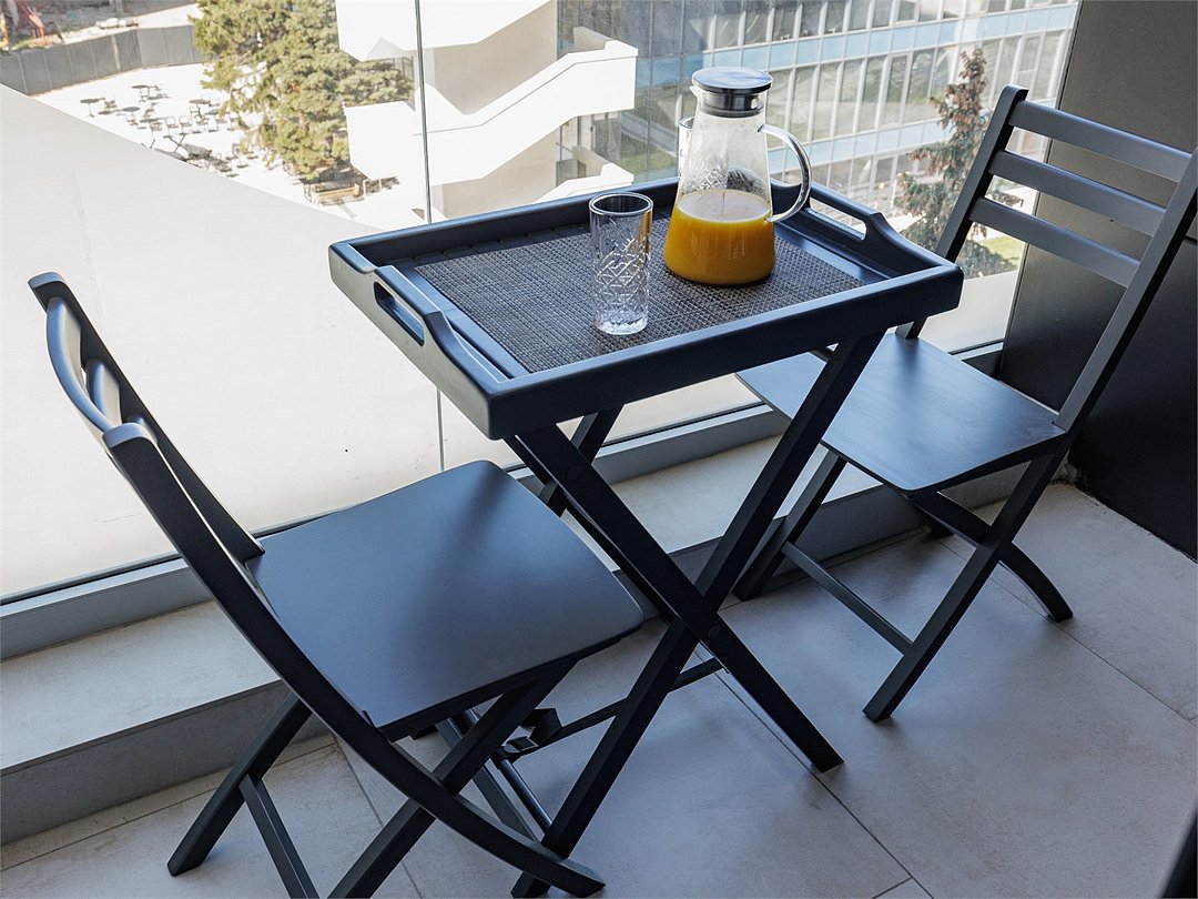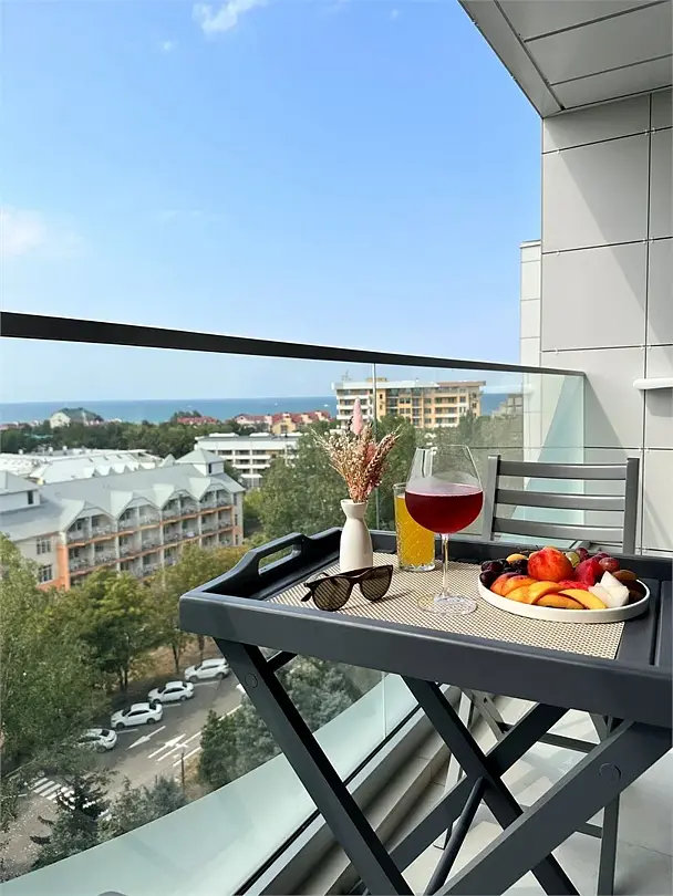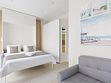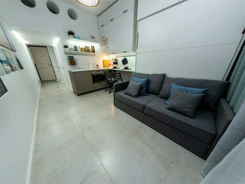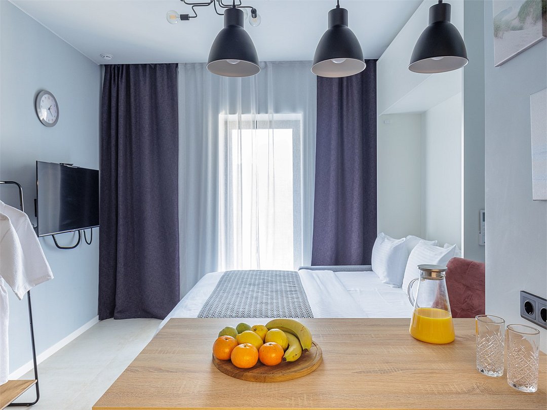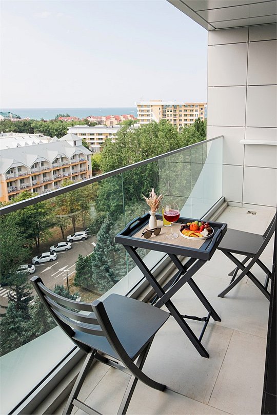Просторный номер с кроватью-трансформер "King Size" и дополнительным местом, а также большим балконом с панорамным видом на море и город. Оборудован телевизором с плоским экраном, зоной для отдыха, сплит-системой и шторами, не пропускающими свет. В распоряжении гостей кухня с холодильником, кофемашина, утюг и гладильная доска, сейф. Бесплатные туалетно-косметические принадлежности, халаты и тапочки.