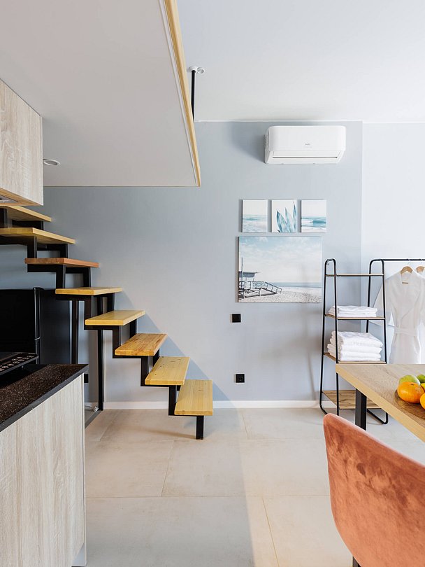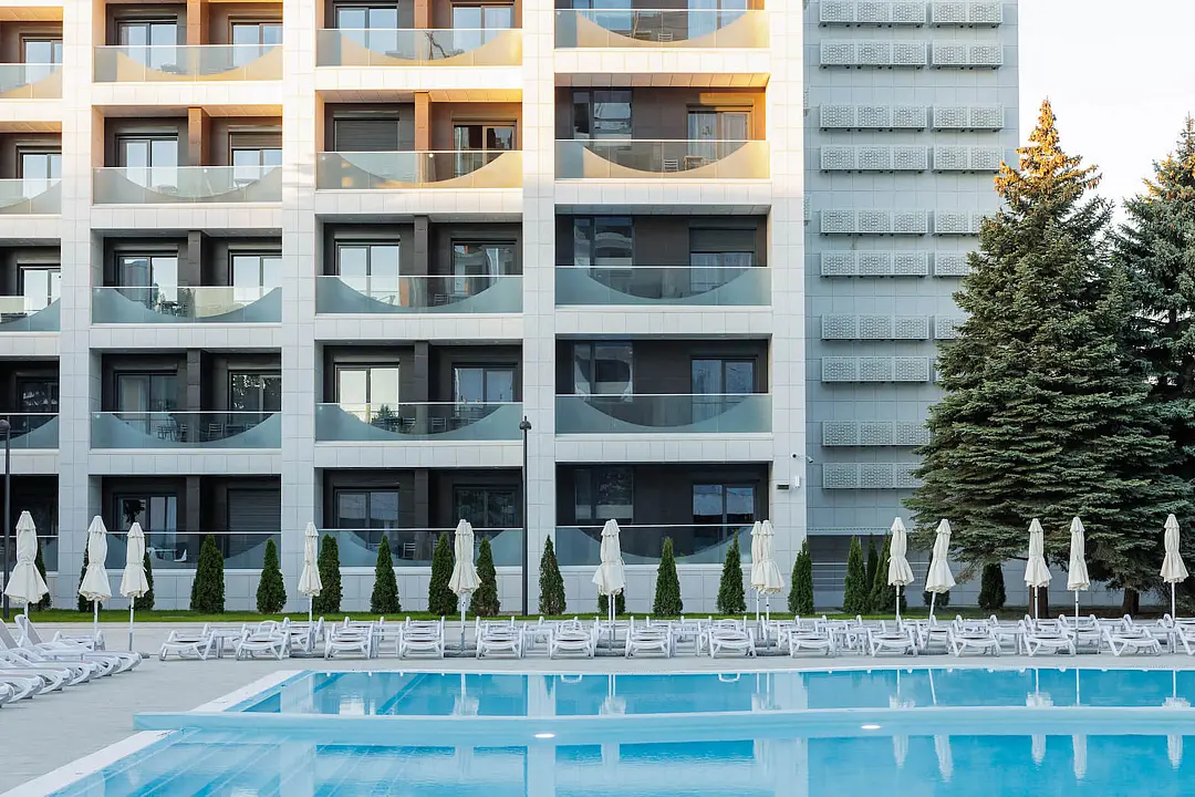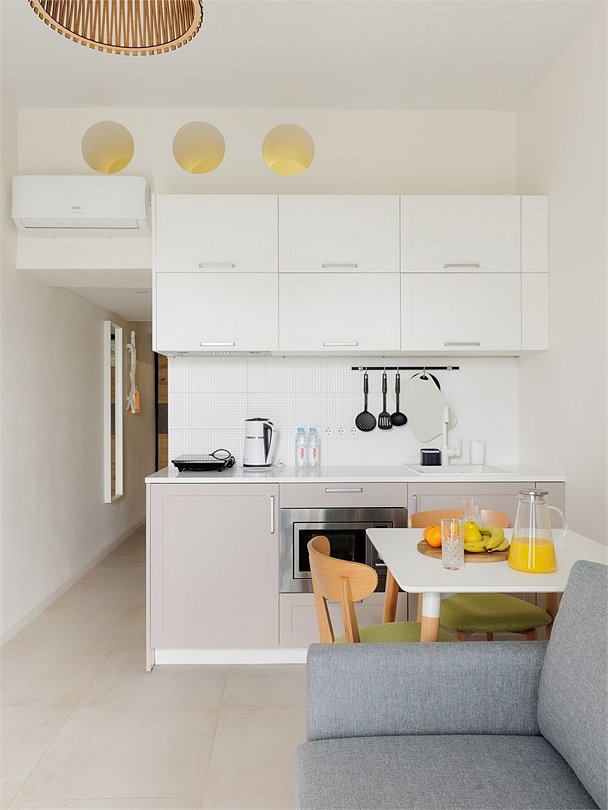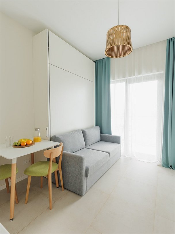 Для размещения гостей предлагаются двух-, трех-, четырехместные номера категории стандарт, а также номера категорий Superior и Junior. Из номеров открывается живописный вид на море, парковую зону и сезонный подогреваемый бассейн. Дизайн выполнен в современном стиле. Каждый номер оснащен кухонной зоной: плита, холодильник, раковина, чайник, микроволновая печь, набор необходимой посуды.