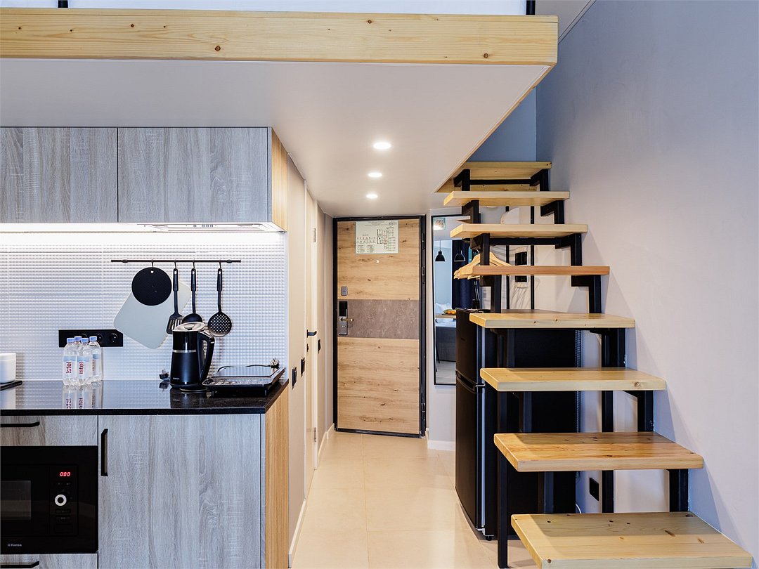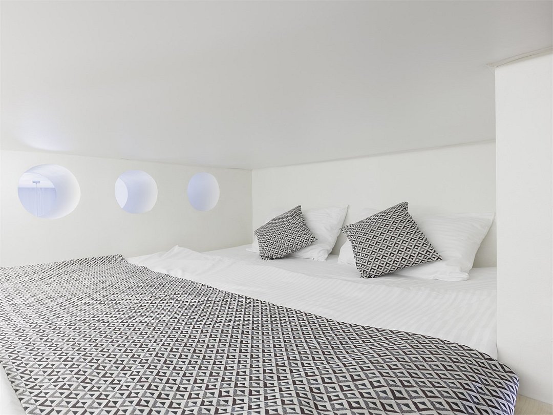 Стильный большой четырехместный номер с кроватью-трансформер "King Size" и второй двуспальной кроватью на втором ярусе. Оборудован телевизором с плоским экраном, барной стойкой, кондиционером и шторами, не пропускающими свет. В распоряжении гостей мини-кухня, ванная, туалет, фен, чайник, холодильник и индукционная плита, а также СОБСТВЕННАЯ СТИРАЛЬНАЯ МАШИНКА. В номере предоставляются тапочки и халаты.