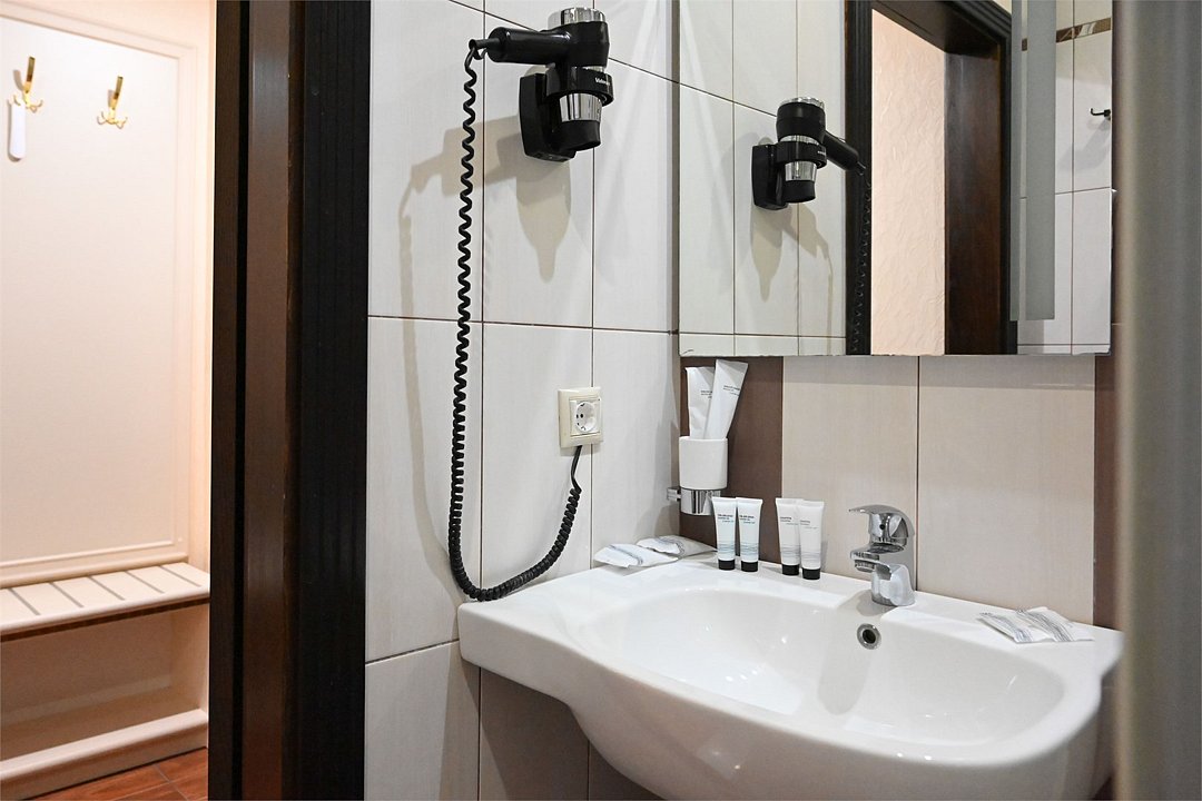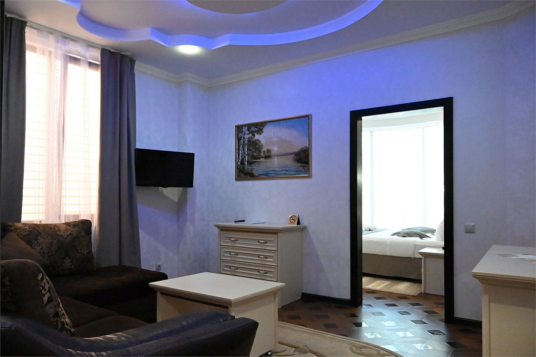 Шикарный двухместный номер. Качественный ремонт и дизайнерская отделка, натяжные потолки с разноуровневой подсветкой, ковровое покрытие на полу, функциональная мебель - всё это позволит получить максимальный комфорт.Услуги и удобства