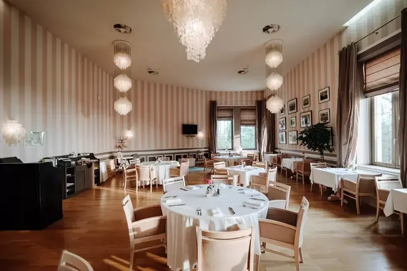 Вечерний ресторан «Черная Магнолия» — подлинная жемчужина RODINA Grand Hotel & SPA. Благородное серебро и фиолетово-лиловая филигрань изысканного французского текстиля Metaphore и Verel de Belval, тончайший фарфор и мягкое золото тяжелых портьер — все здесь подчинено безупречной эстетике утонченного стиля. Дизайн «Черной Магнолии» выполнен известным французским кутюрье Paco Rabanne, благодаря которому ресторан приобрел неповторимую изысканность и шик.
