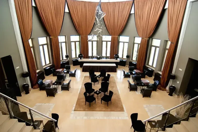 Это идеальное место для церемонии бракосочетания. Для деловых партнеров — это место, где проводятся фуршеты во время деловых переговоров и конференций.