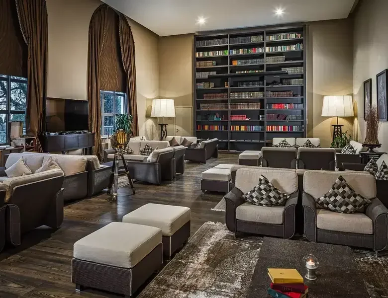 В этом элегантном лобби-баре гости могут отдохнуть за чашечкой ароматного кофе, расположившись на уютных диванах. Изысканные десерты собственного приготовления, легкие закуски, чай, кофе, прохладительные и алкогольные напитки элитных марок. Лобби-бар имеет летнюю террасу, которая работает круглосуточно и всегда открыта для наших гостей.