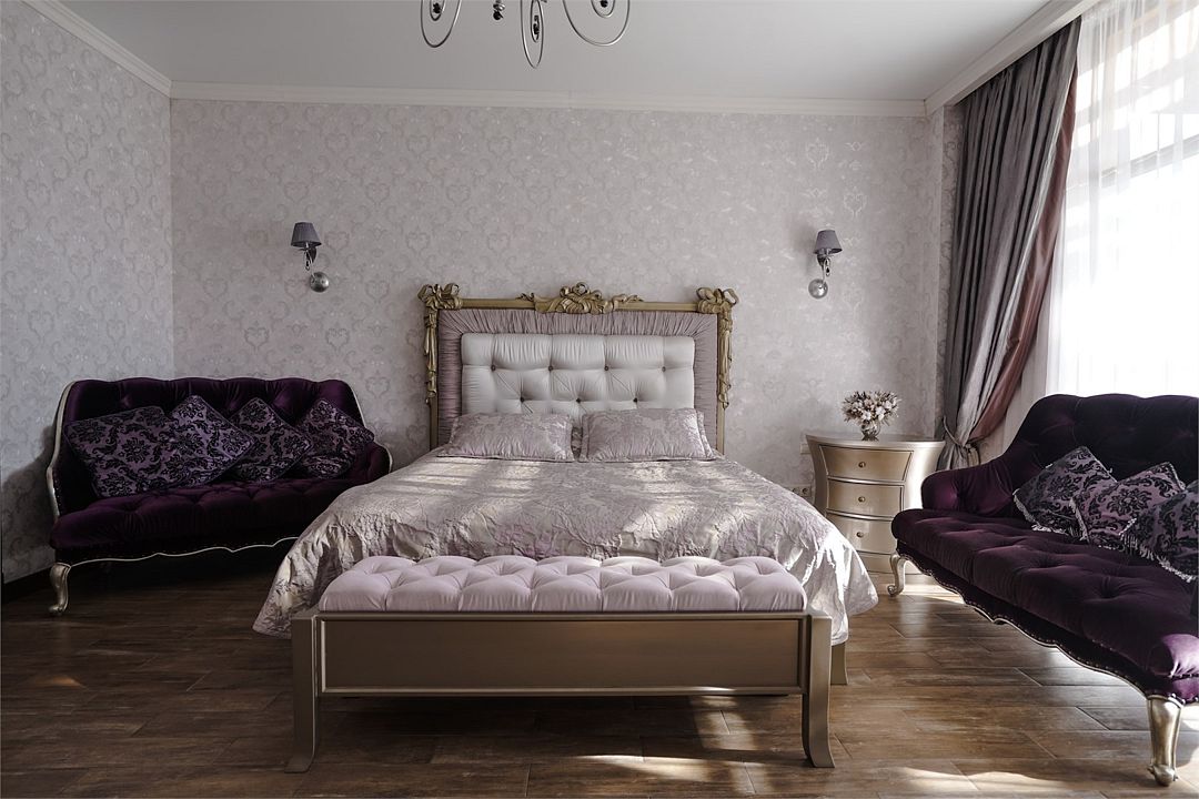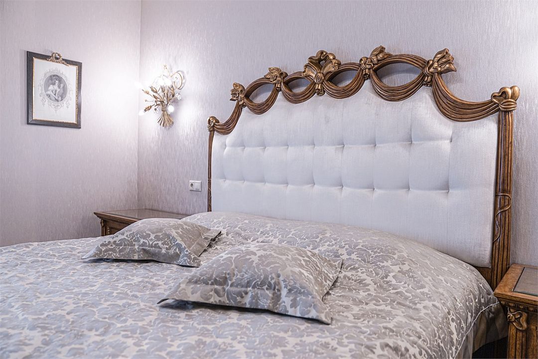 Превосходный светлый номер площадью 17 м² расположен на втором этаже Главного корпуса. Интерьер выполнен в благородных сиреневых оттенках с элементами золота.