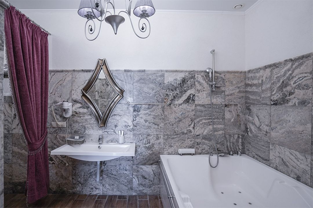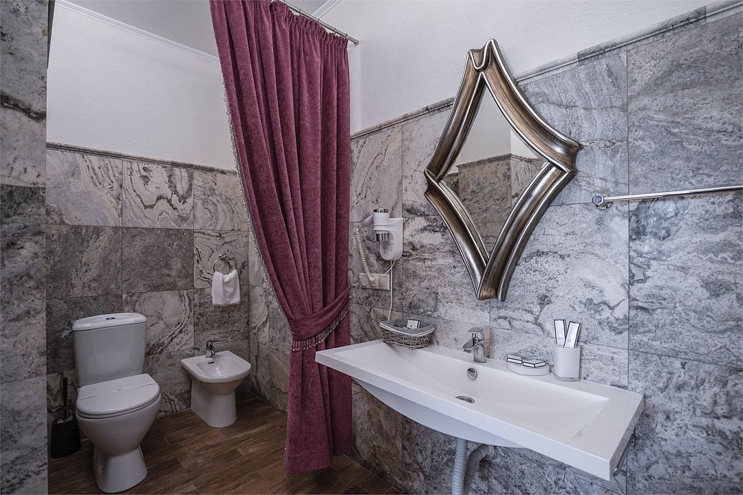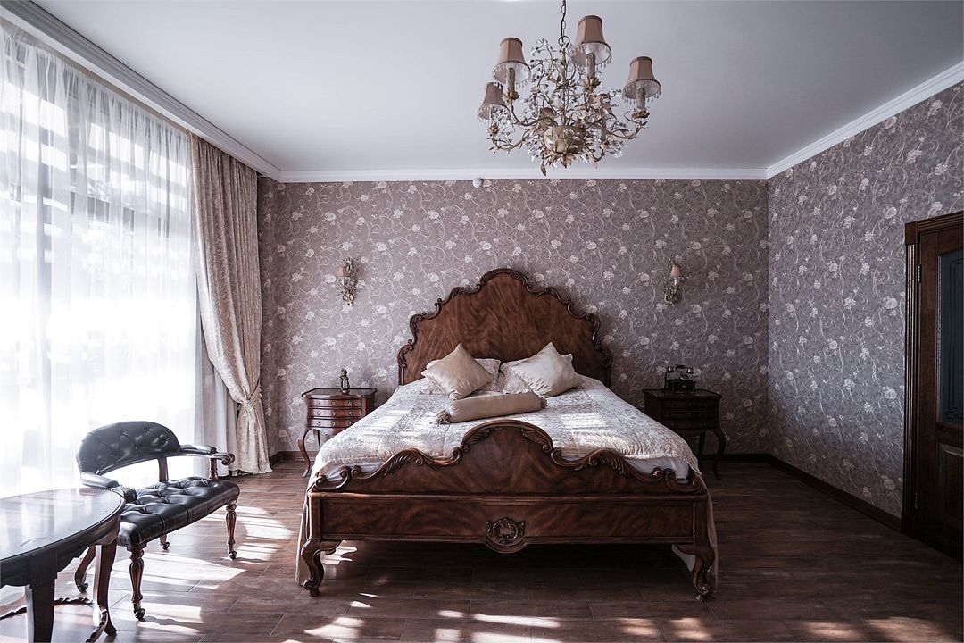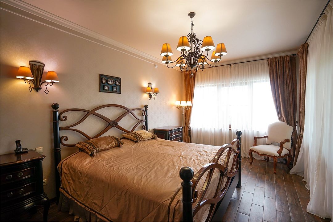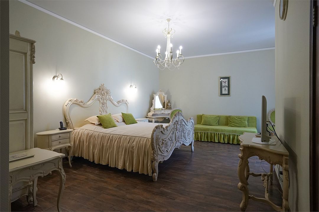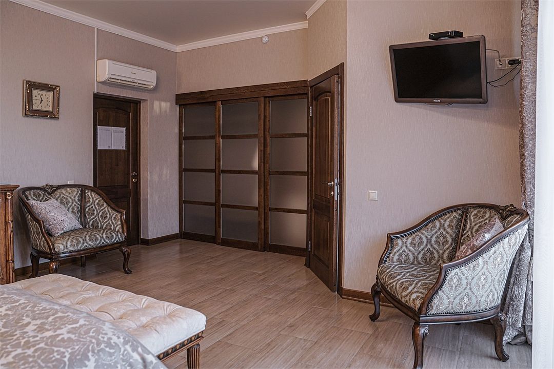 Просторный номер площадью 36 м² расположен на втором этаже корпуса Вилла. Интерьер выполнен в роскошном европейском стиле, в теплых, пастельных тонах и укомплектован эксклюзивной мебелью из благородных пород дерева.