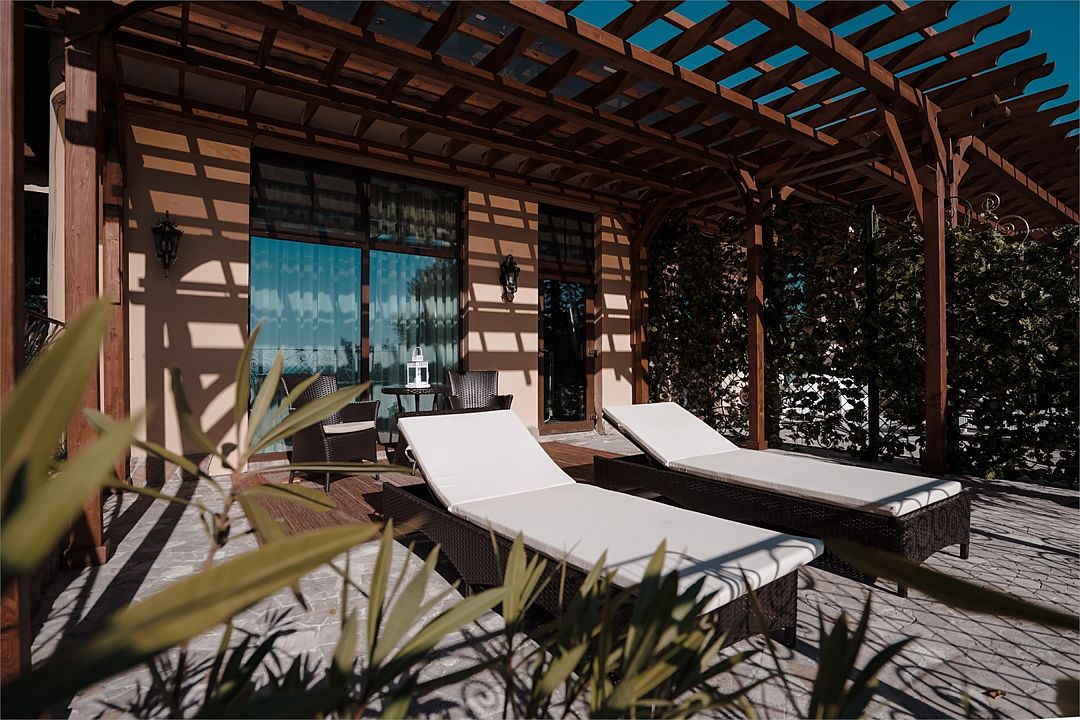 Номер с видом на море. Расположен в корпусе Терраса, рядом с зоной отдыха и подогреваемым бассейном.