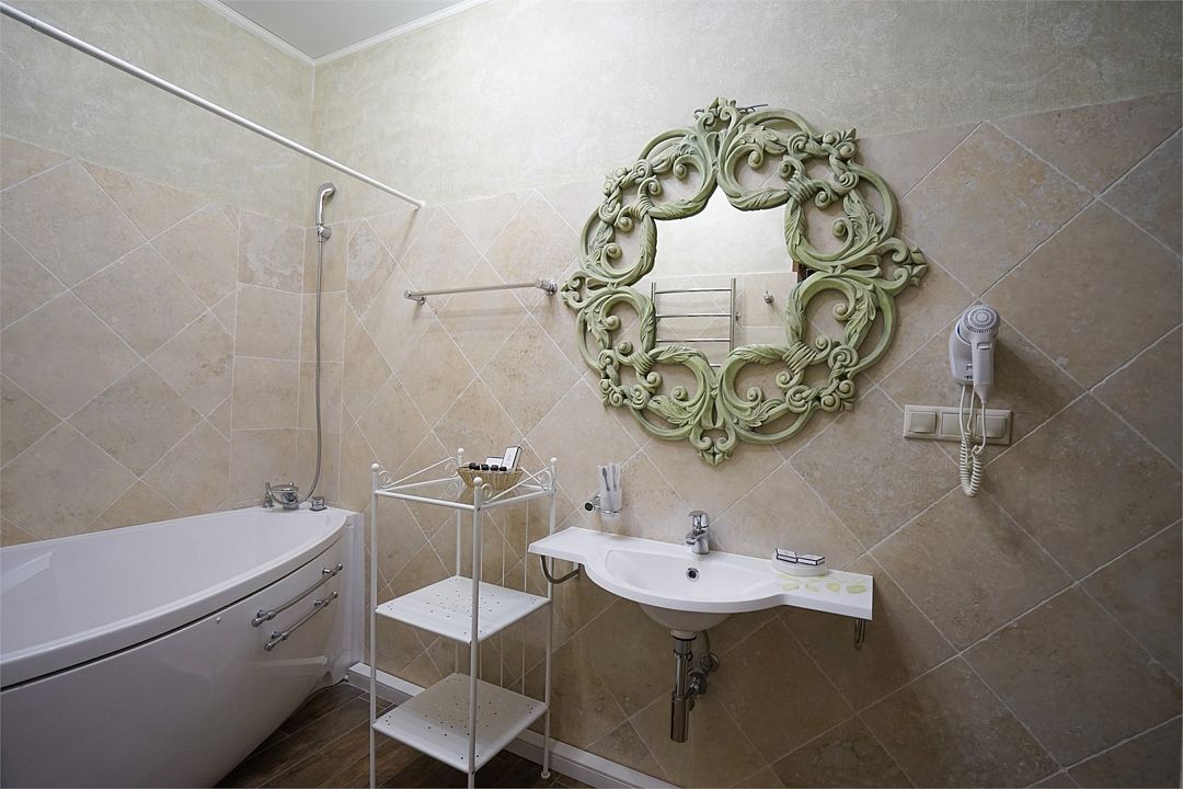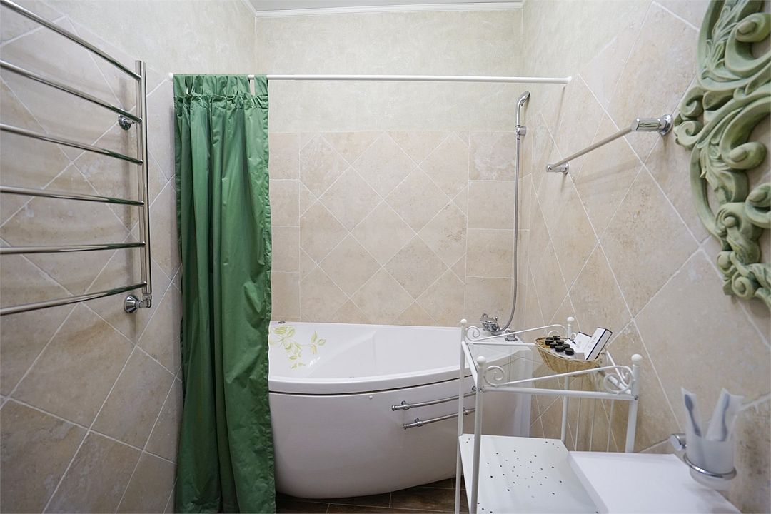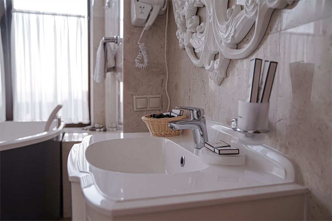 Великолепный номер площадью 38м² и высотой потолков 4,2м² расположен на третьем этаже Главного корпуса. Интерьер выполнен в европейском стиле, в светлых, зеленых тонах и укомплектован эксклюзивной мебелью из благородных пород дерева.