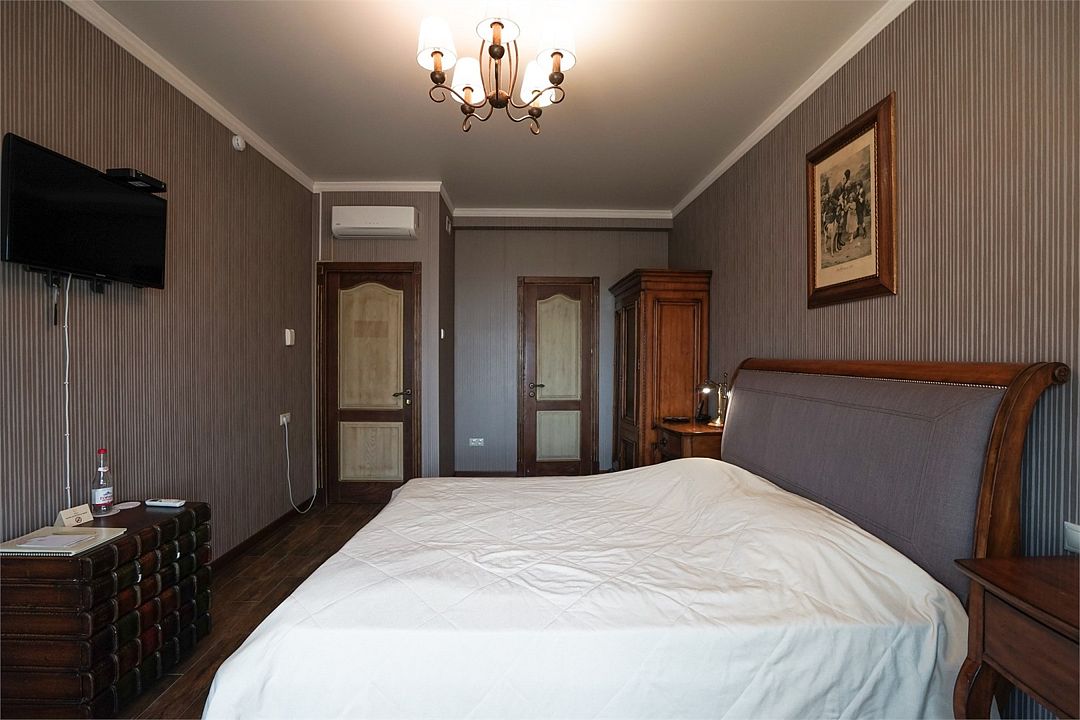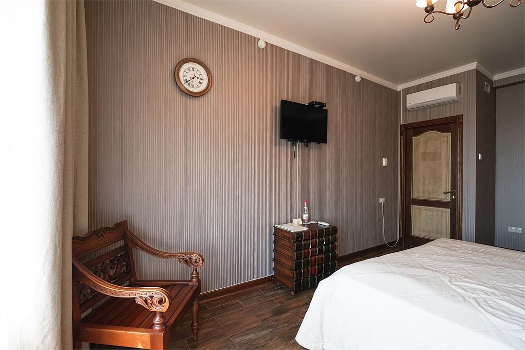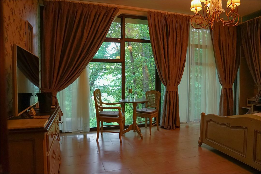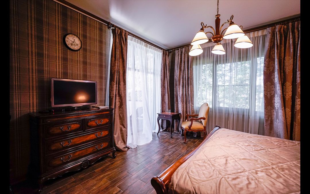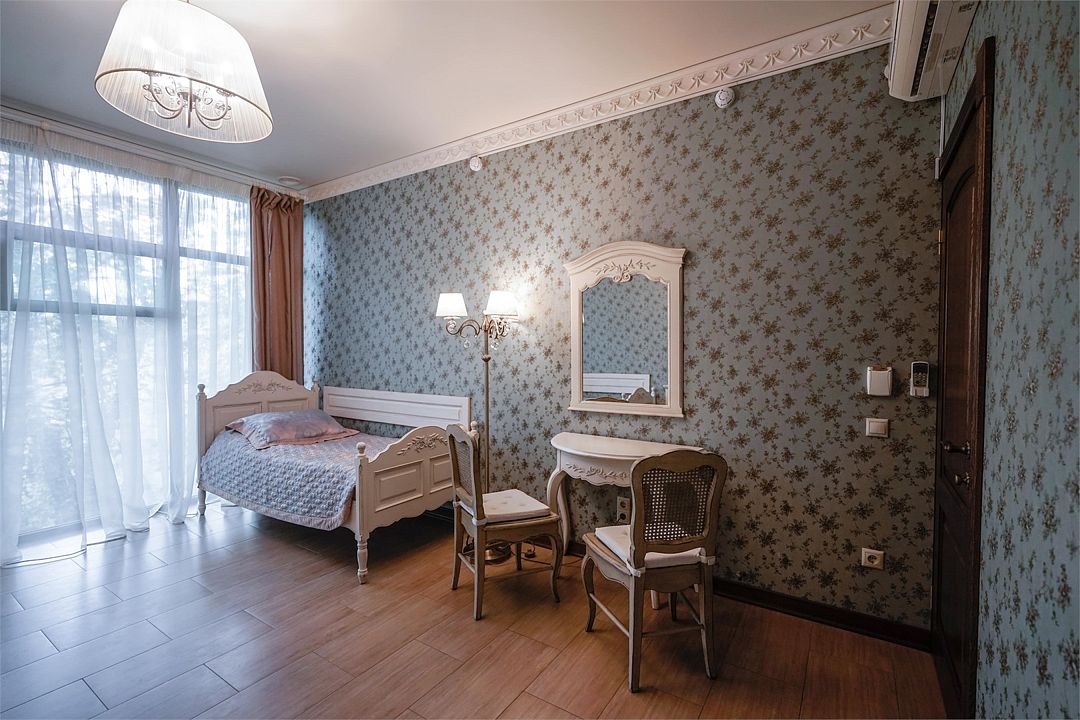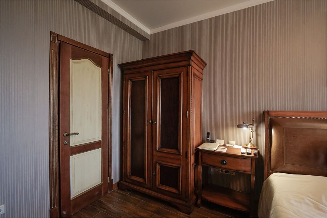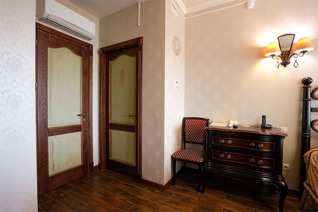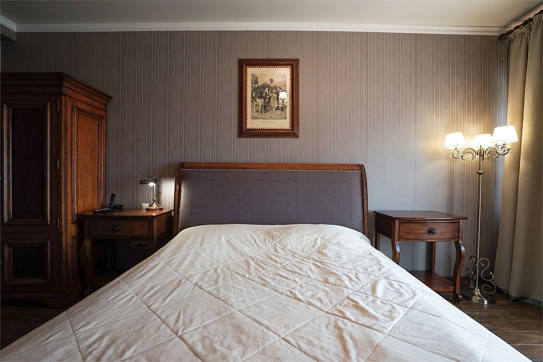 Уютный и стильный номер площадью 26 м² расположен на втором этаже Главного корпуса. Интерьер выполнен в европейском стиле, в темных, пастельных тонах и укомплектован эксклюзивной мебелью из натуральных пород дерева.