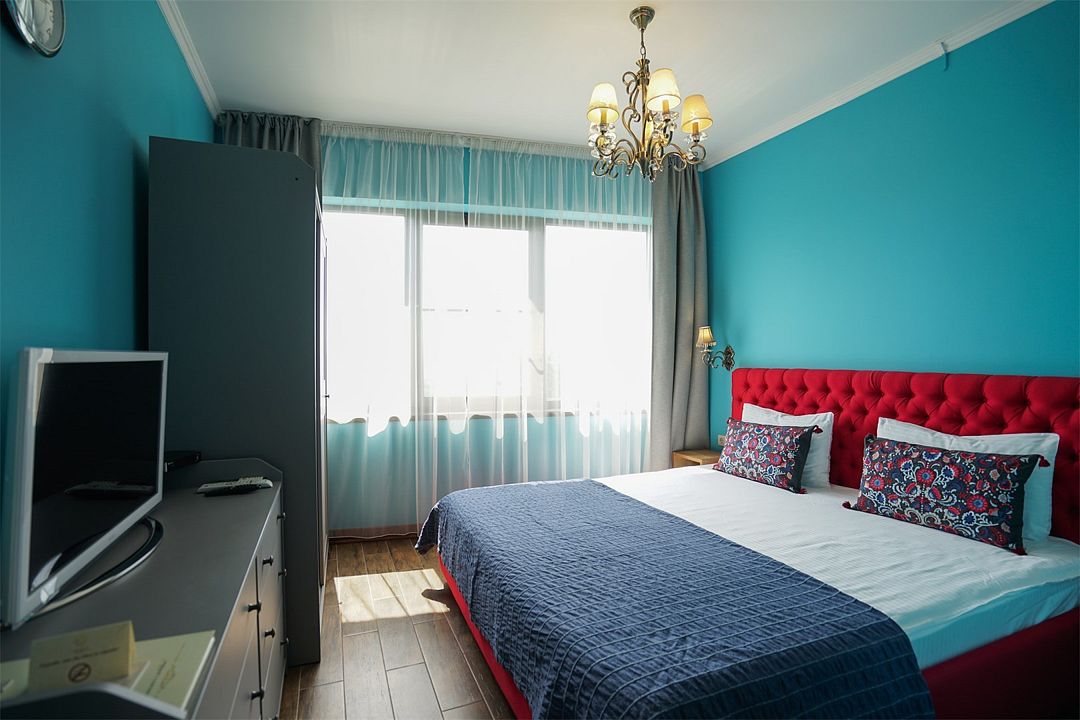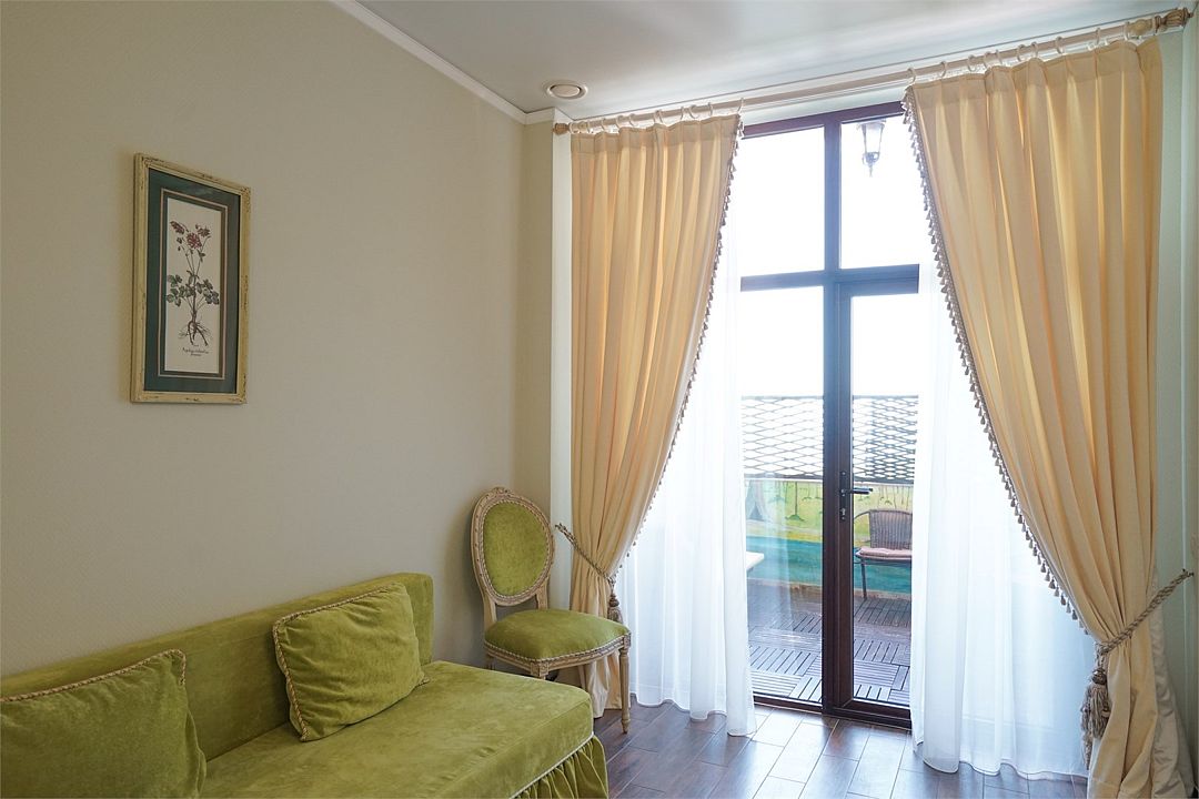 Уютный номер расположен на втором этаже корпуса Villa. Интерьер выполнен в классических пастельных тонах с эксклюзивной мебелью.