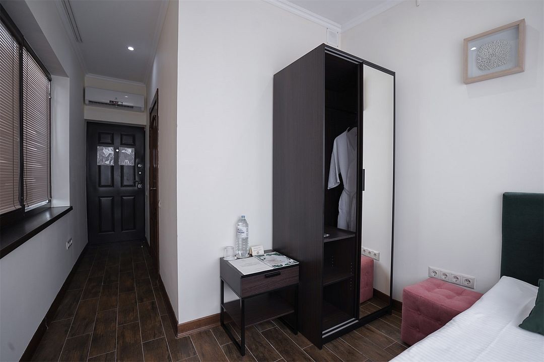 Одноместный стандартный номер. Площадь 12 м² расположен в корпусе Терраса, рядом с зоной отдыха и подогреваемым бассейном.