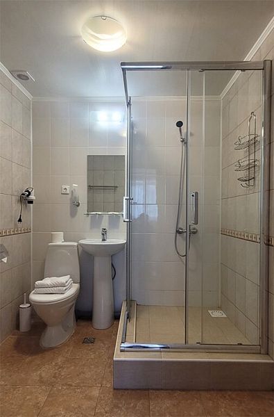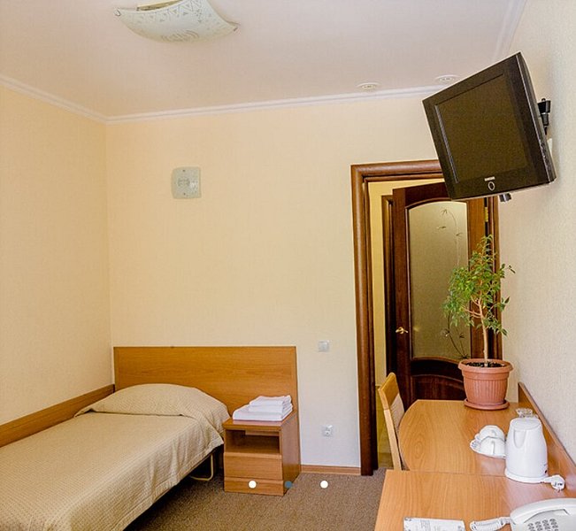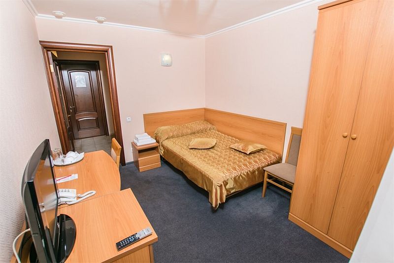 Однокомнатный номер, балкон, коридор, санузел с душевой кабиной. Кровать (120 на 200), чайник, фен, мини-бар, телевизор.