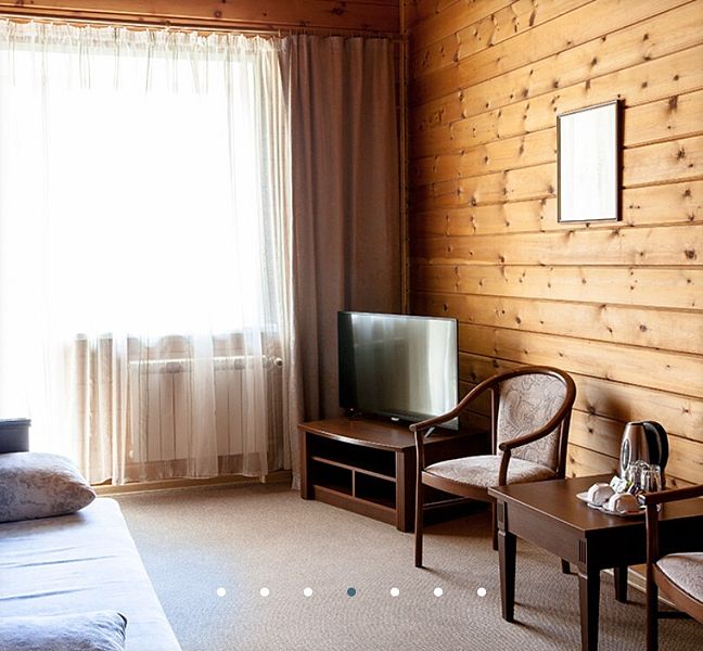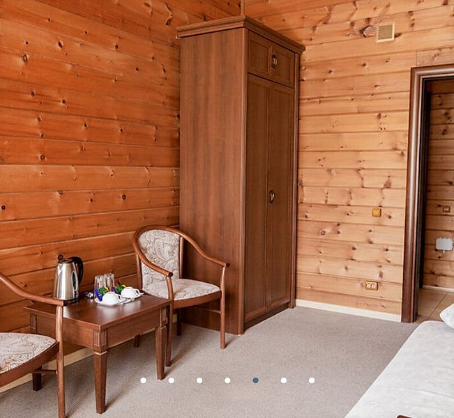 Корпоративный корпус «Охотничья Изба» – уникальное предложение! Отдельная гостиница, построенная из дерева. Подобных строений всего семь в мире. В гостинице: 7 номеров класса «Люкс», зал торжеств с барной стойкой, несколько зон отдыха, террасы.