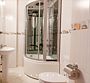 Двуспальная кровать, диван, кресло, трюмо со стулом, комод, 2 тумбочки, шкаф для одежды, шкаф для посуды, сан/узел с душевой кабиной (2хместная), спальня: двуспальная кровать, 2 тумбочки, трюмо.