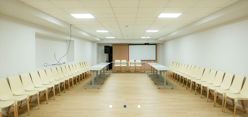 Тренинговый зал: площадь 90м2, 10 столов, 40 стульев, вся необходимая аудио- и видеосистема.