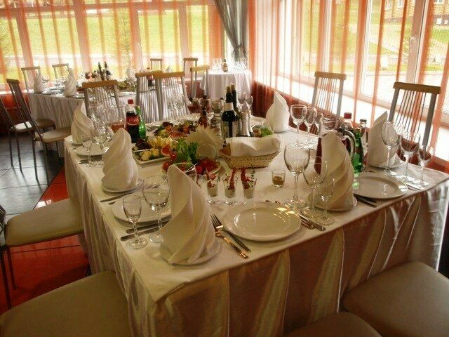 Ресторан рассматриваемой турбазы может похвастать богатым меню русской и европейской кухни. Его изысканный зал станет прекрасным местом для проведения банкета либо свадебного торжества.