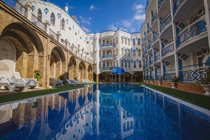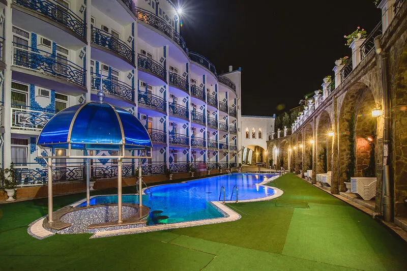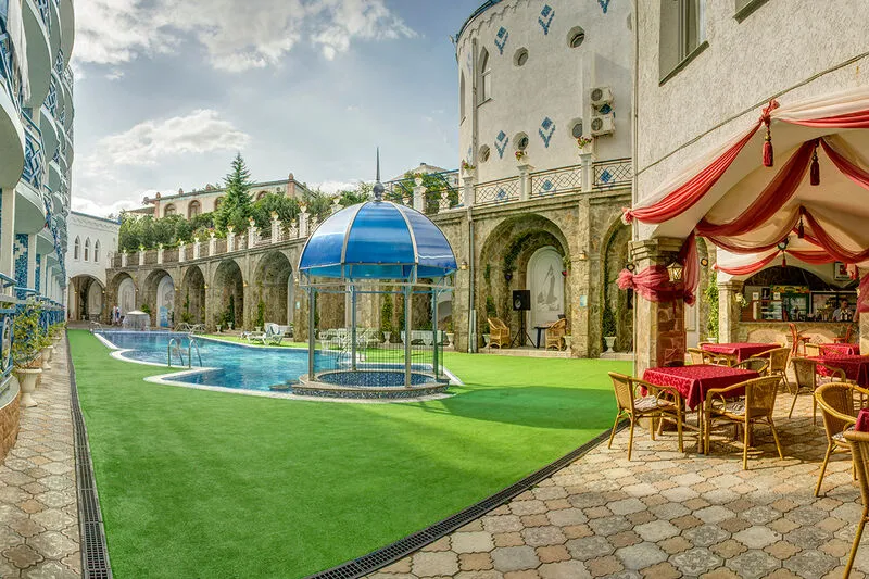 К услугам гостей отеля «1001 ночь» в Ялте: ресторан, открытый бассейн, бар у бассейна, восточная кофейня, тренажерный зал, СПА-комплекс (бани: русская, турецкая, финская, кабинет массажных технологий.