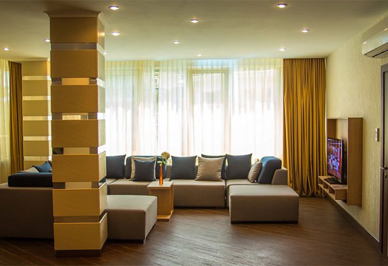 Комфортные трехкомнатные номера с двумя отдельные спальнями с собственными ванными комнатами, гостиная — с зоной отдыха и кухней.