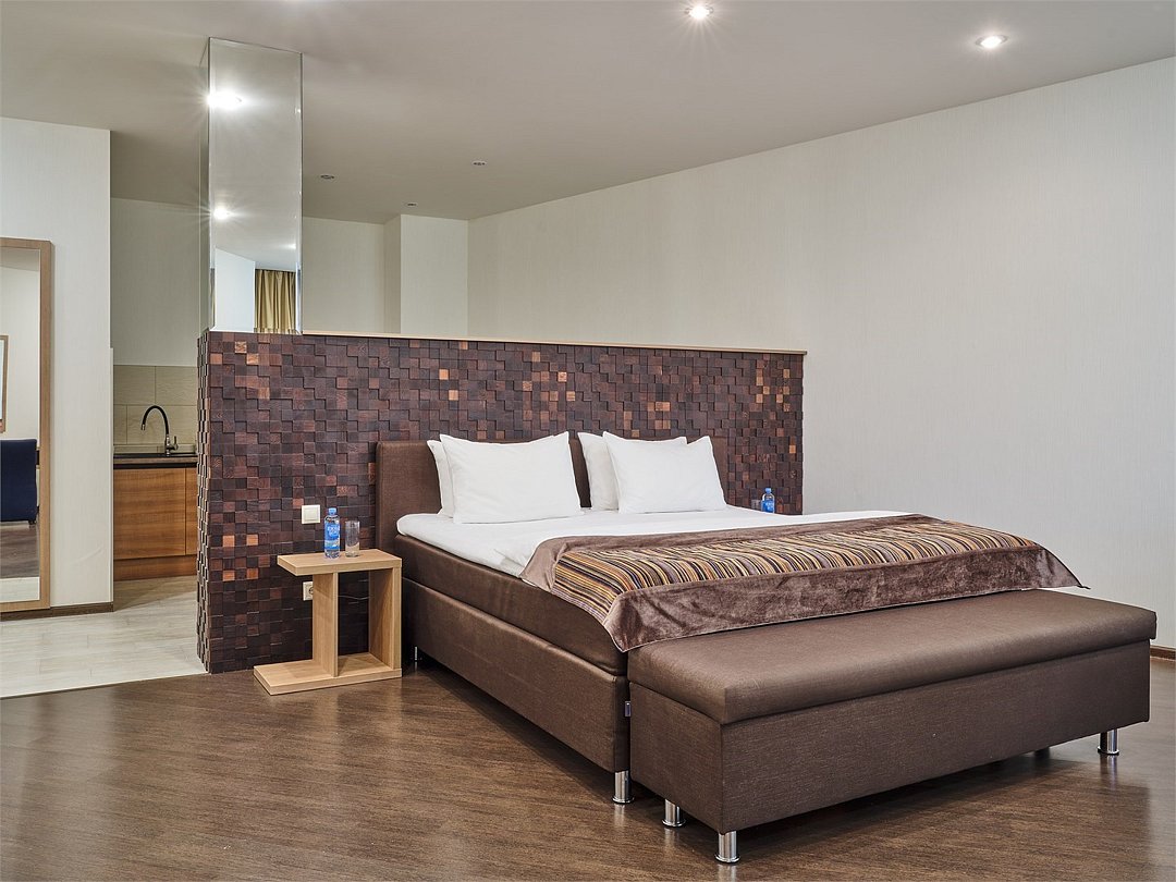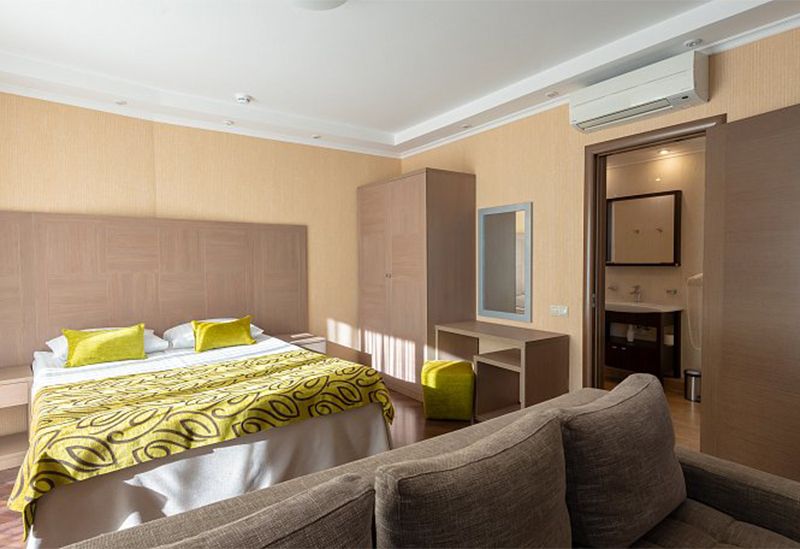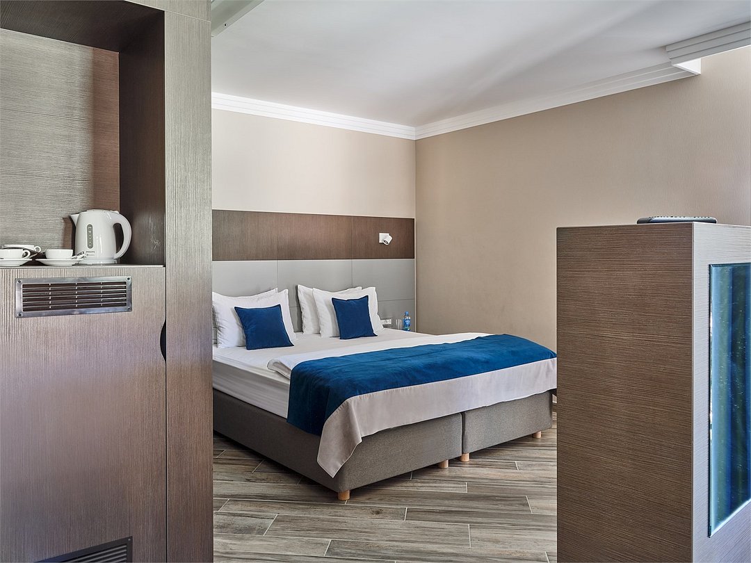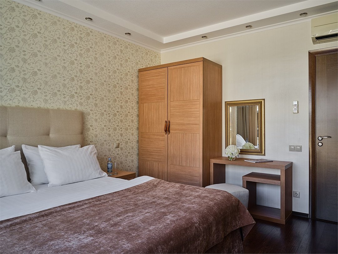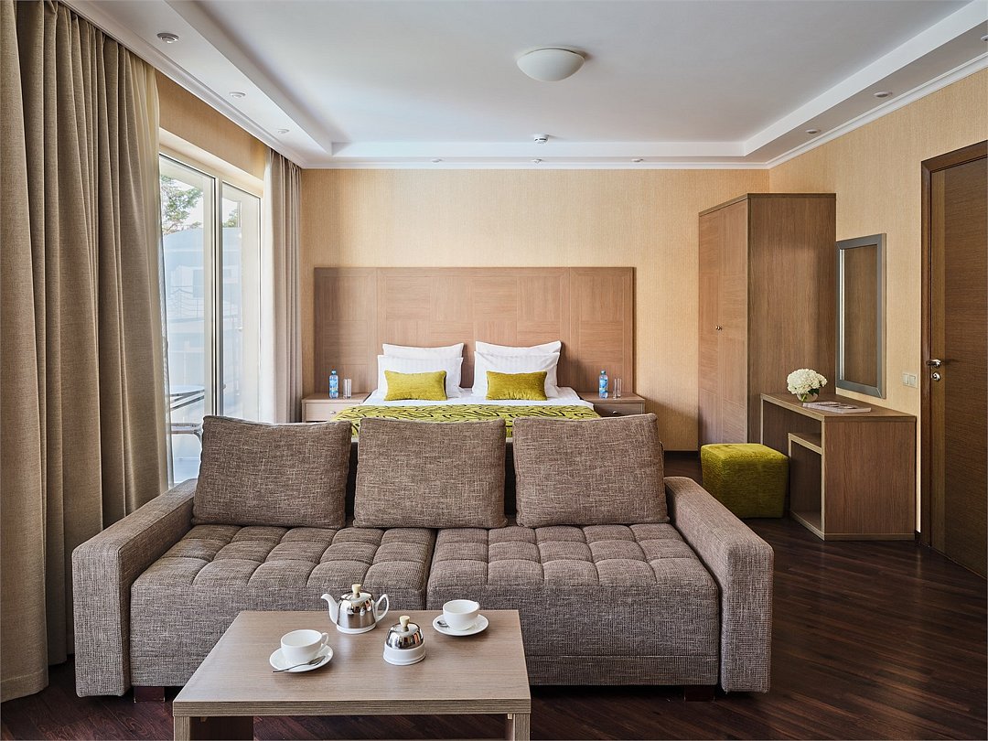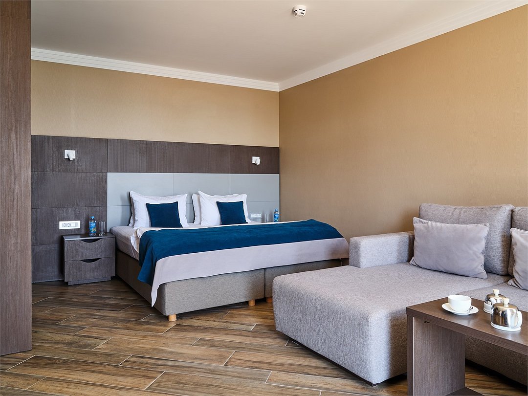 Однокомнатный номер с большой двуспальной кроватью /возможно с 2-мя раздельными — по запросу, с зоной отдыха.