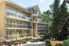 Вид — внутренний дворик у парадного входа, солнечная сторона / во двор с открытым бассейном, солнечная сторона / дворик с открытым бассейном, теневая сторона.