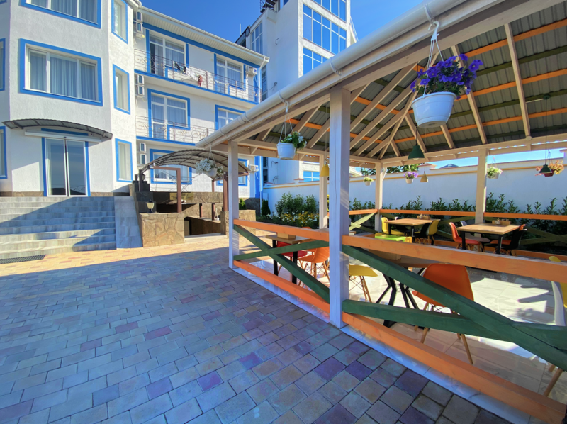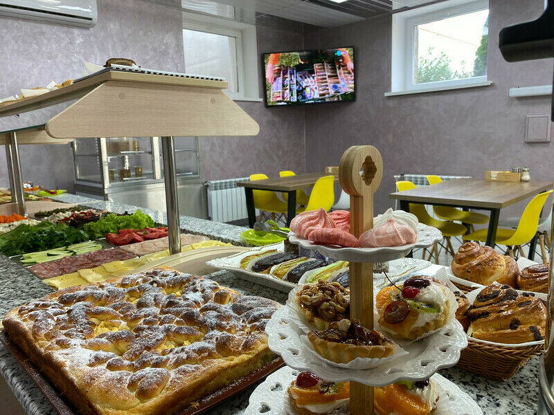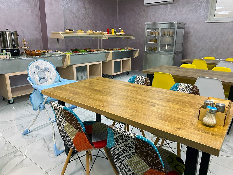 Гостиница расположена в трехэтажном здании, где работает ресторан-столовая по системе «Шведский стол». В меню — европейская, азиатская и крымско-татарская кухня, приготовленная из качественных местных продуктов. Для гостей, следящих за фигурой, есть отдельные блюда, а для детей — специальное меню.