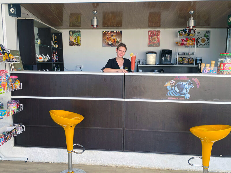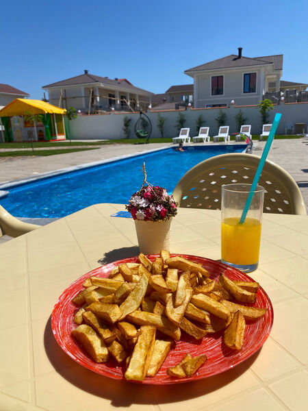 Возле бассейна расположен оригинальный бар, который предлагает мороженое в ассортименте, фруктовый лед, лимонады и соки, питьевую воду, молочные коктейли — всё, что поможет утолить жажду и подарит положительные эмоции. Также в меню бара есть алкогольные напитки, легкие закуски, шашлыки, пицца и снеки.
