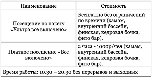 - посещение сауны, хаммама, крытого бассейна (кроме «Ультра все включено»);