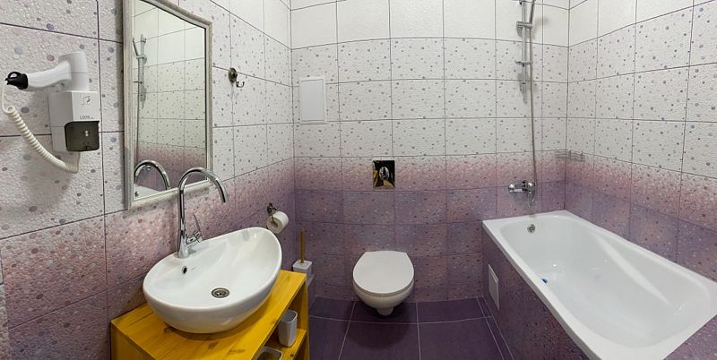 - с ванной или душевой кабиной