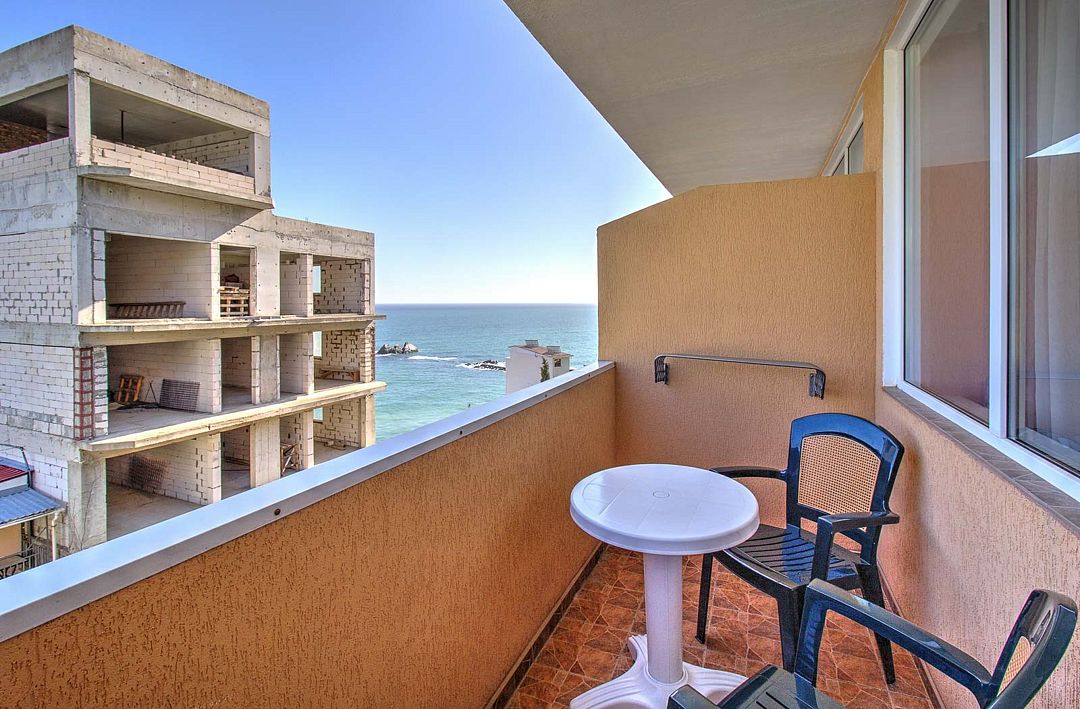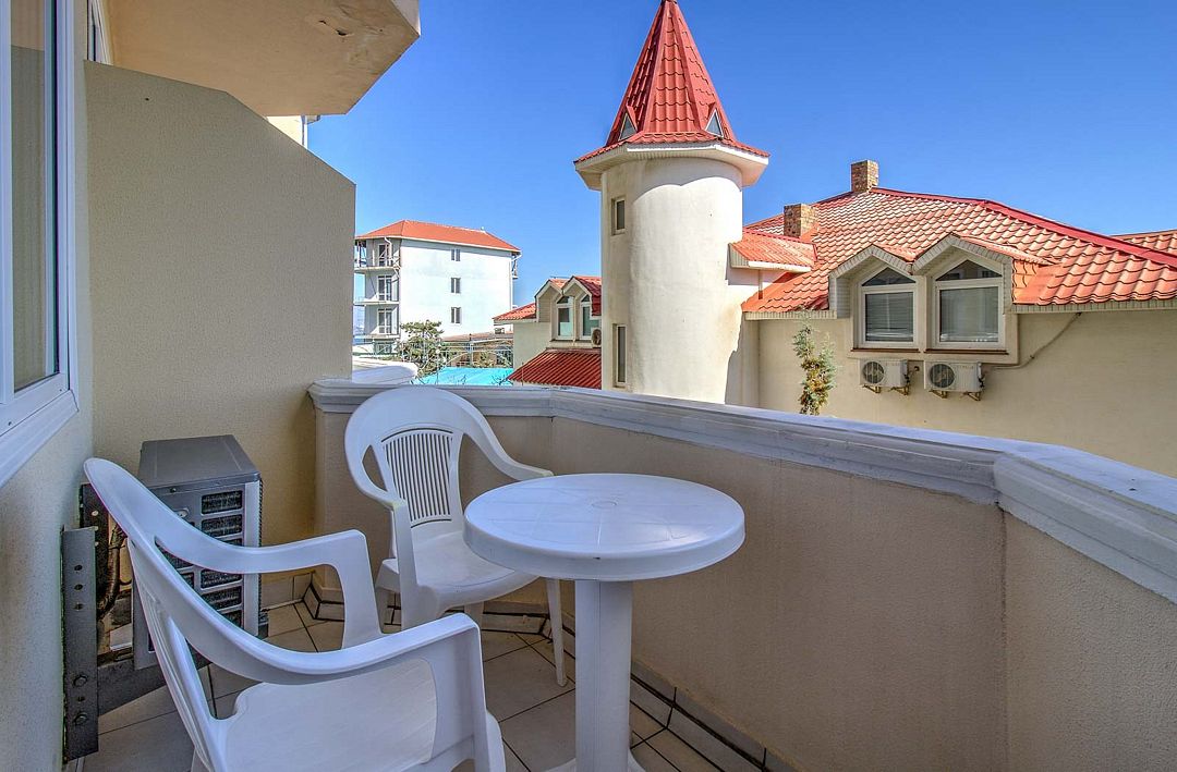 Номера данной категории находятся во втором корпусе Отеля, при бронировании номера обратите внимания что подъем к корпусу по ступенькам через внутренний дворик Отеля. Номера расположены на уровне 5, 6 и 7 этажах. Уютный классический однокомнатный номер общей площадью 17 кв.м, который отлично подойдёт для одноместного или двухместного размещения с двуспальной кроватью. Номера имеют собственный выход на балкон с боковым видом на Чёрное море. Интерьер номеров, выполненный в светлых и спокойных тонах, поможет вам отдохнуть и расслабиться после долгой поездки или активного времяпрепровождения. Дополнительное место-евро раскладушка. Парковки у Отеля нет! Лифта в Отеле нет!Услуги и удобства
