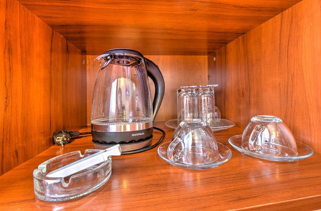 кабельное телевидение, Wi-Fi, холодильник, кондиционер, светильник, настольные лампы, фен, душевая кабина, банные полотенца, пляжные полотенца, тапочки, балкон, балкон с красивым видом, двуспальная кровать, две односпальные кровати, две односпальные или большая двуспальная кровать, шкаф для одежды, вешалки, чайник, унитаз, раковина, ковровое покрытие, вид на море, стаканы, столовые приборы, стол, тумба, туалетные средства, сушилка для белья, раскладное кресло, телевизор с плоским экраном, гостиничная парфюмерия, кресло-кровать, уборка номера, набор для приготовления чая и кофе, вешалки-плечики, мылоВ гостиничном номере