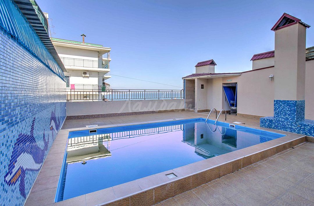 Сауна на крыше с выходом к бассейну и прекрасным видом на море.