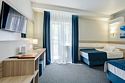 Лечение и оздоровлениеДостоинстваОтдыхали здесь семьей. Номер достался неплохой, убранный, с новой мебелью, балконом. Ассортимент блюд на завтрак небогатый, но приемлемый. Блюда вкусные. Есть детское меню. У отеля большая и красивая территория, за которой регулярно ухаживают. Рядом с ним есть парк, в котором присутствуют все необходимые развлечения для детей. Зона у бассейна обустроенная, комфортная. Интернет на территории ловит нормально. В целом, нам понравилось.